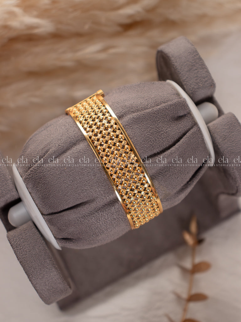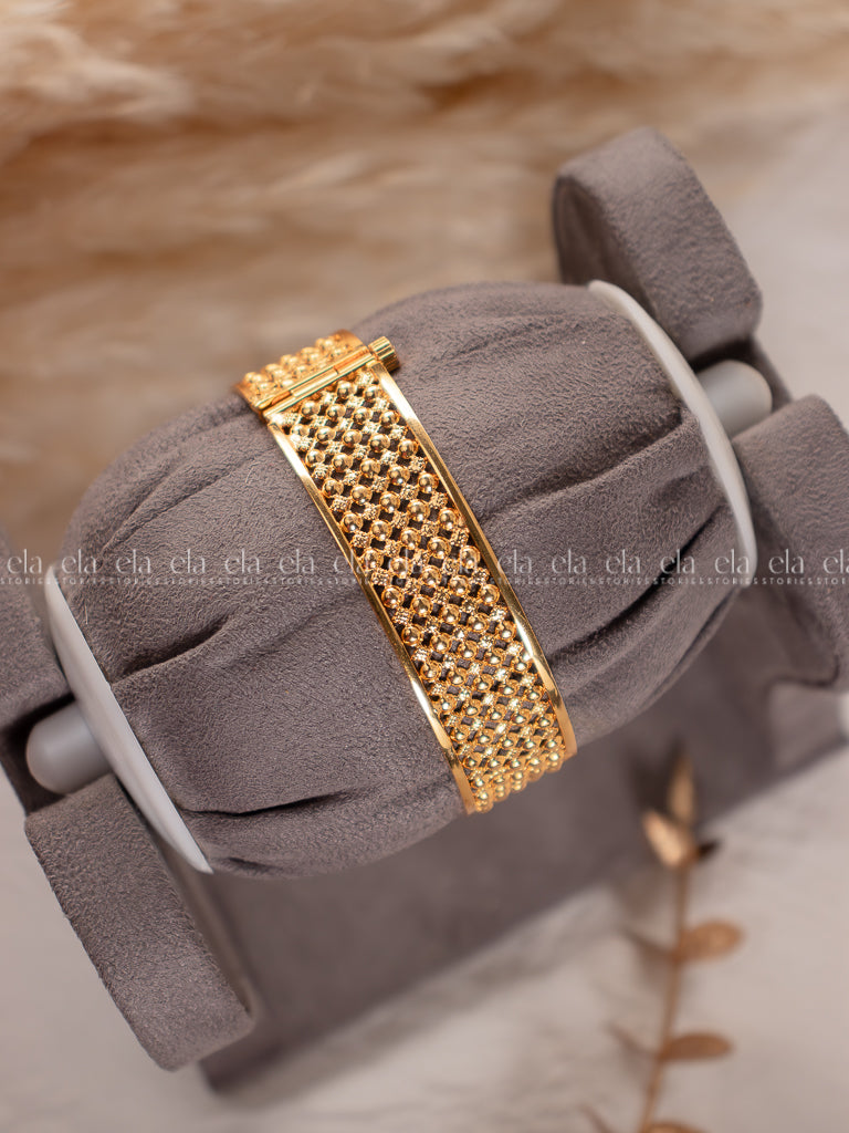 • A stunning gold tone bracelet which has an opening clasp and can fit a wrist bigger in size also.