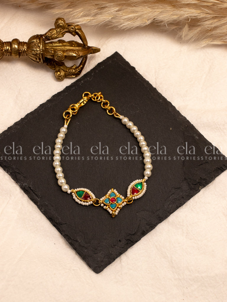 Kundan Bracelet - Ruby/White/Green