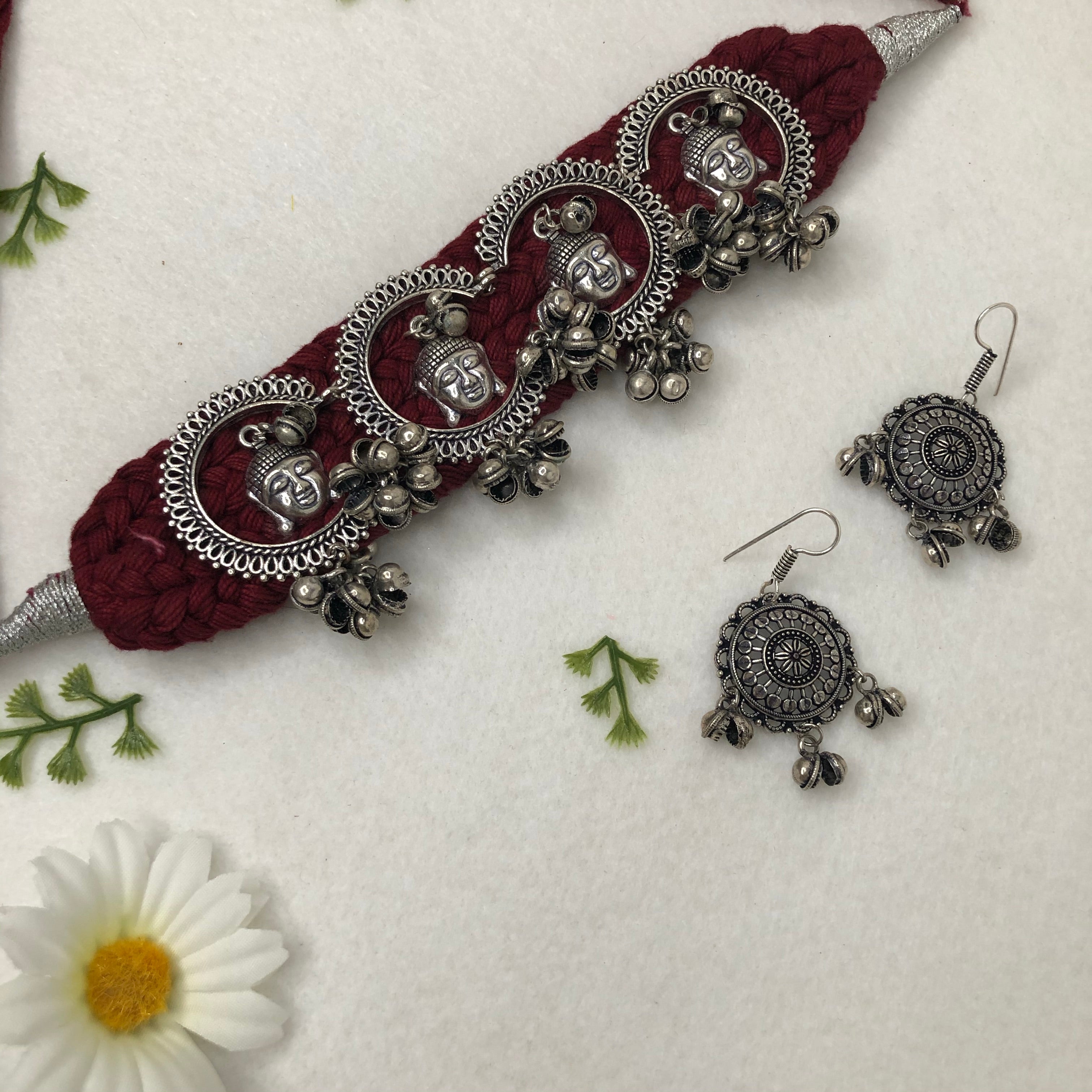 Highneck Choker Necklace With Oxidized Plating - Maroon