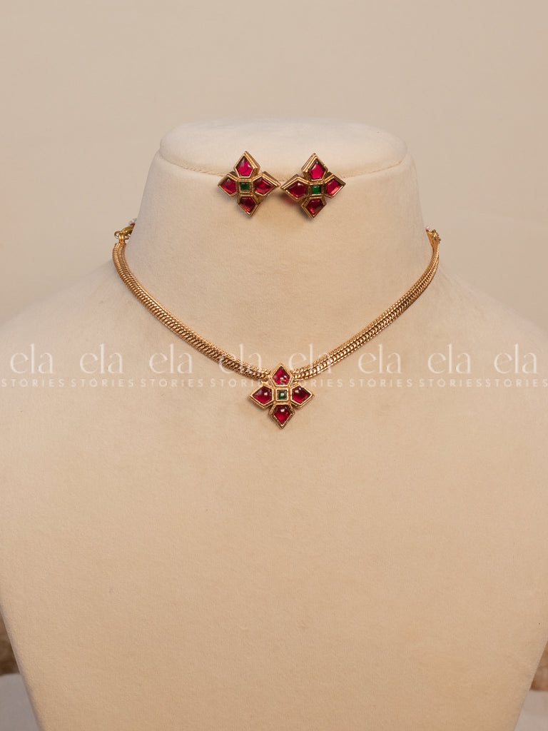 Diamond Motif - Ruby/Green - Flexible Chain - Pocket Friendly