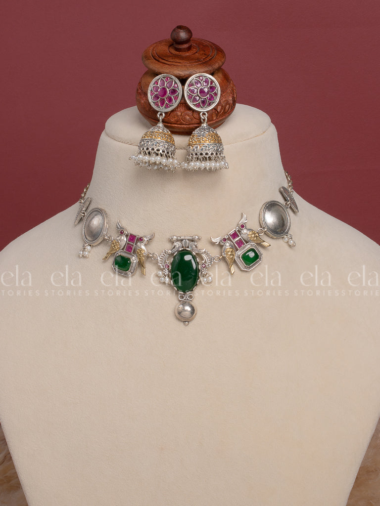 Tribal Choker - Green/Ruby - NC265-3