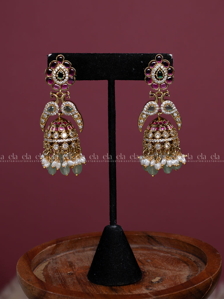 Peacock Motif Kemp Jhumka - Bridal