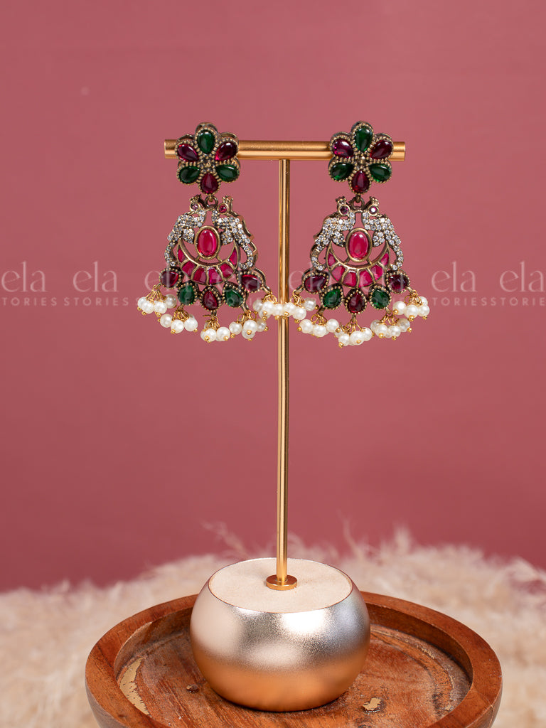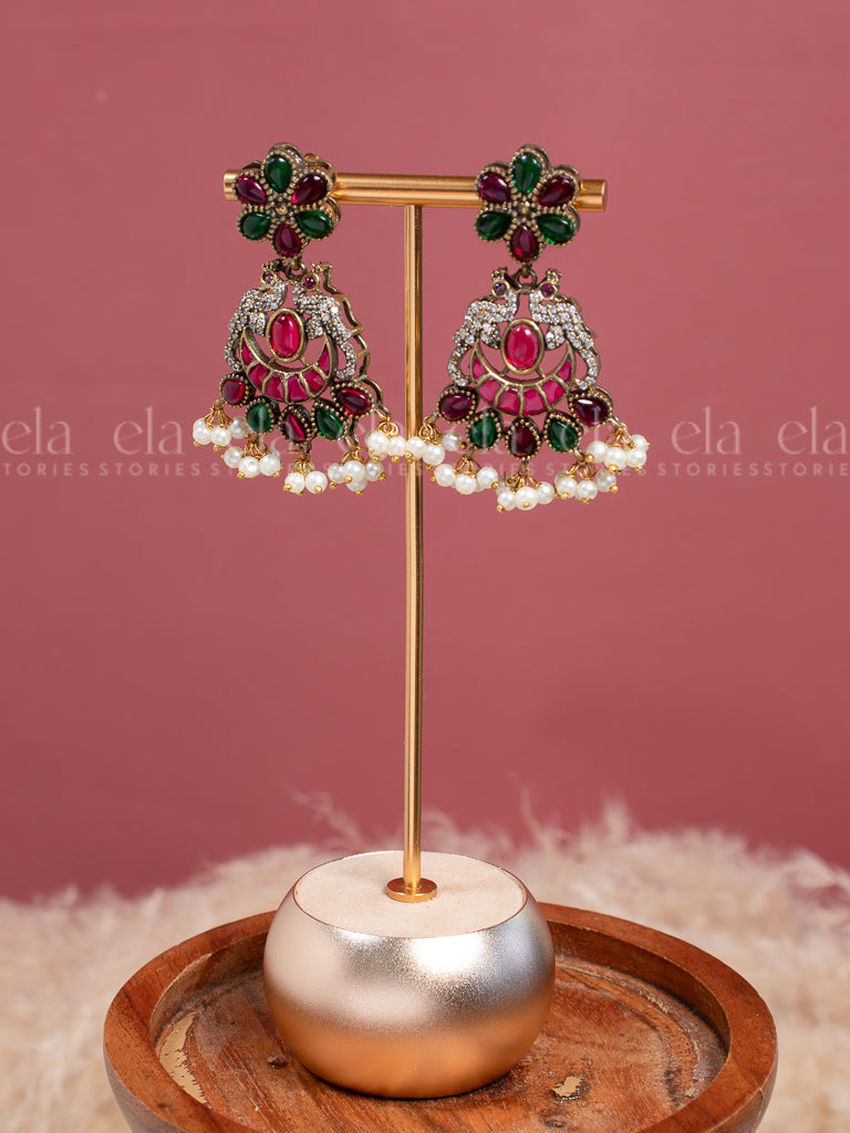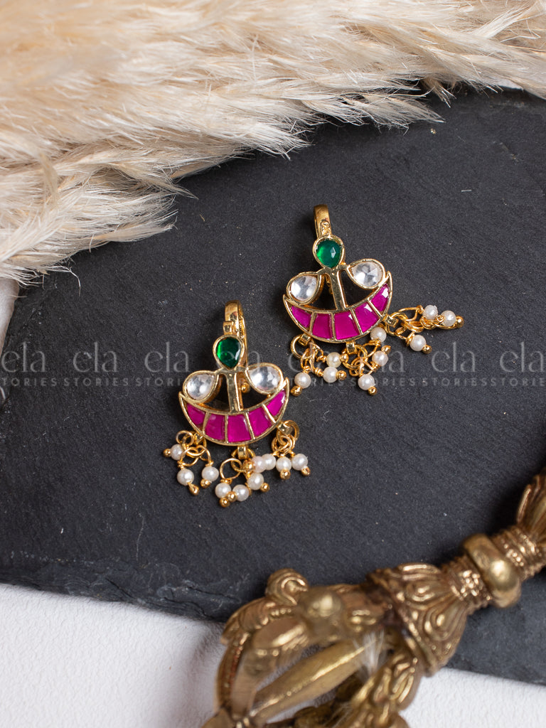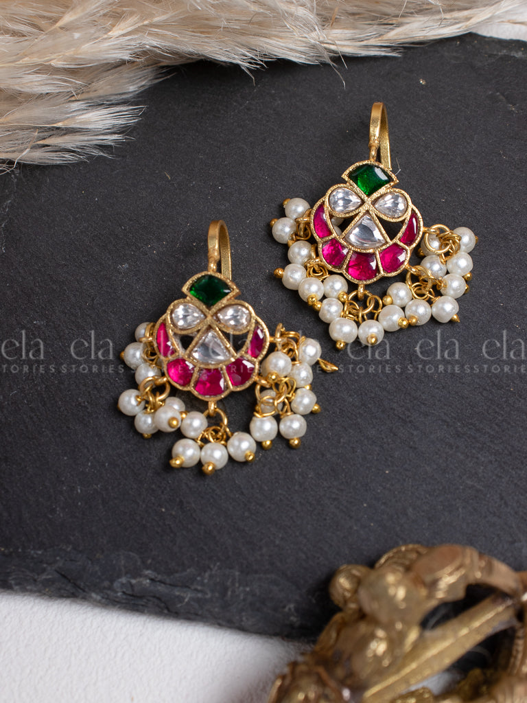 Tribal Kundan Jhumka -Ruby/Green