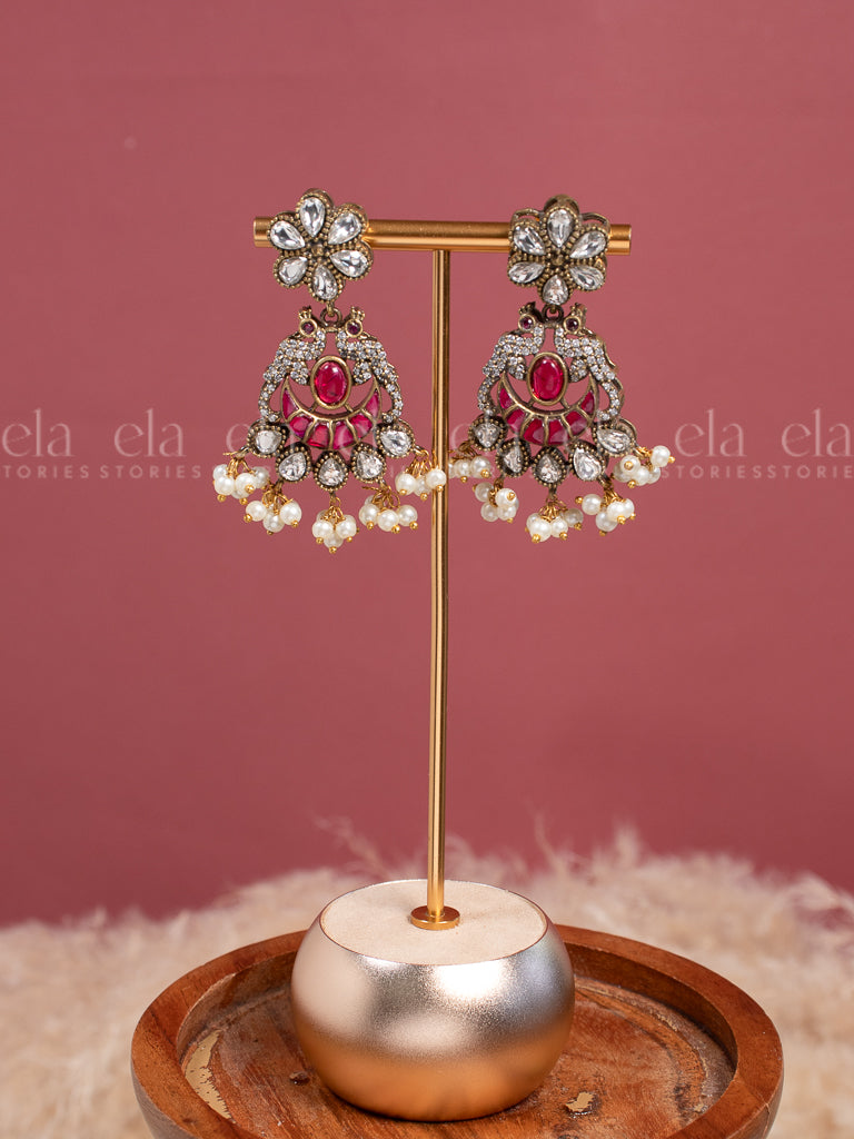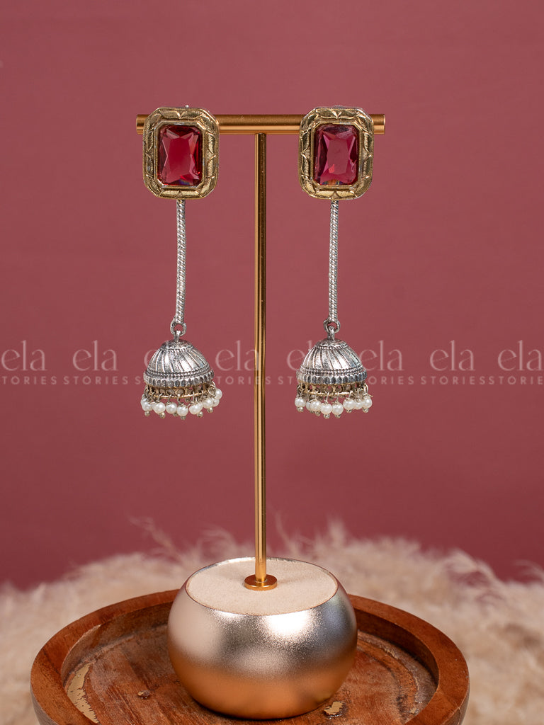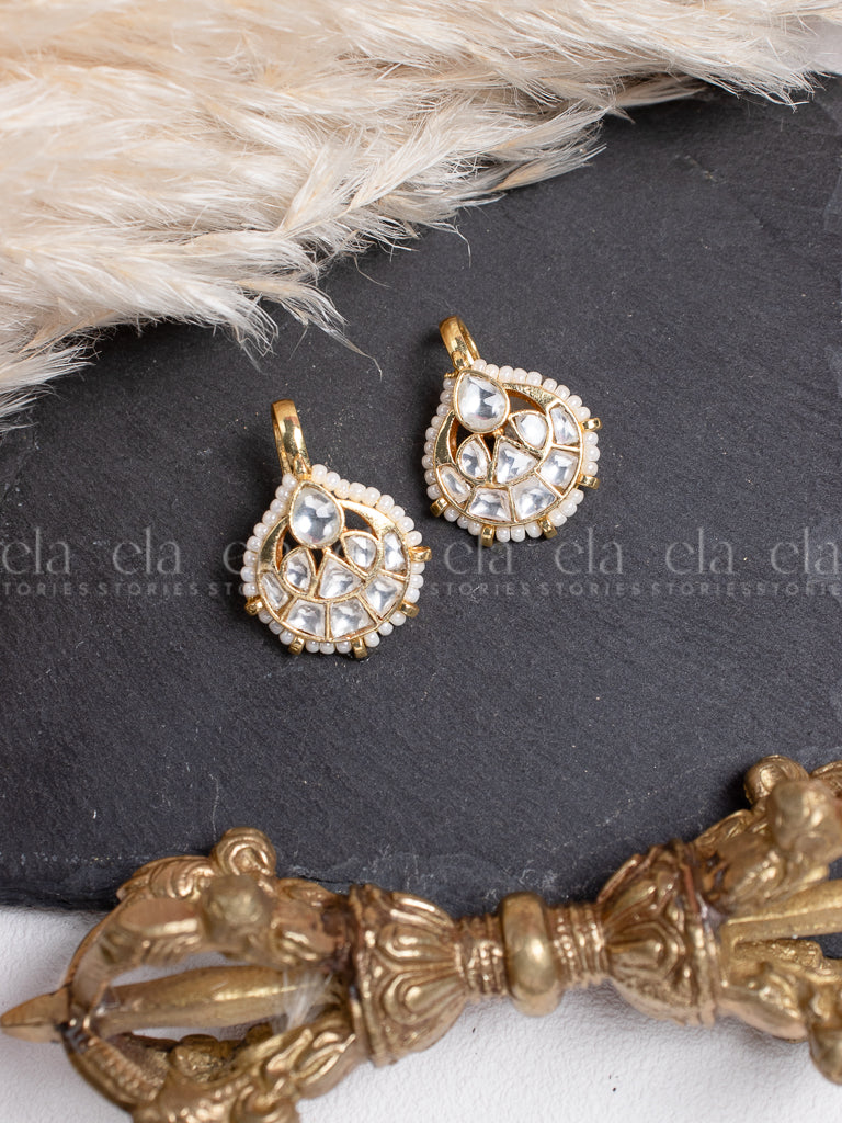 Tribal Kundan Jhumka - White/Ruby