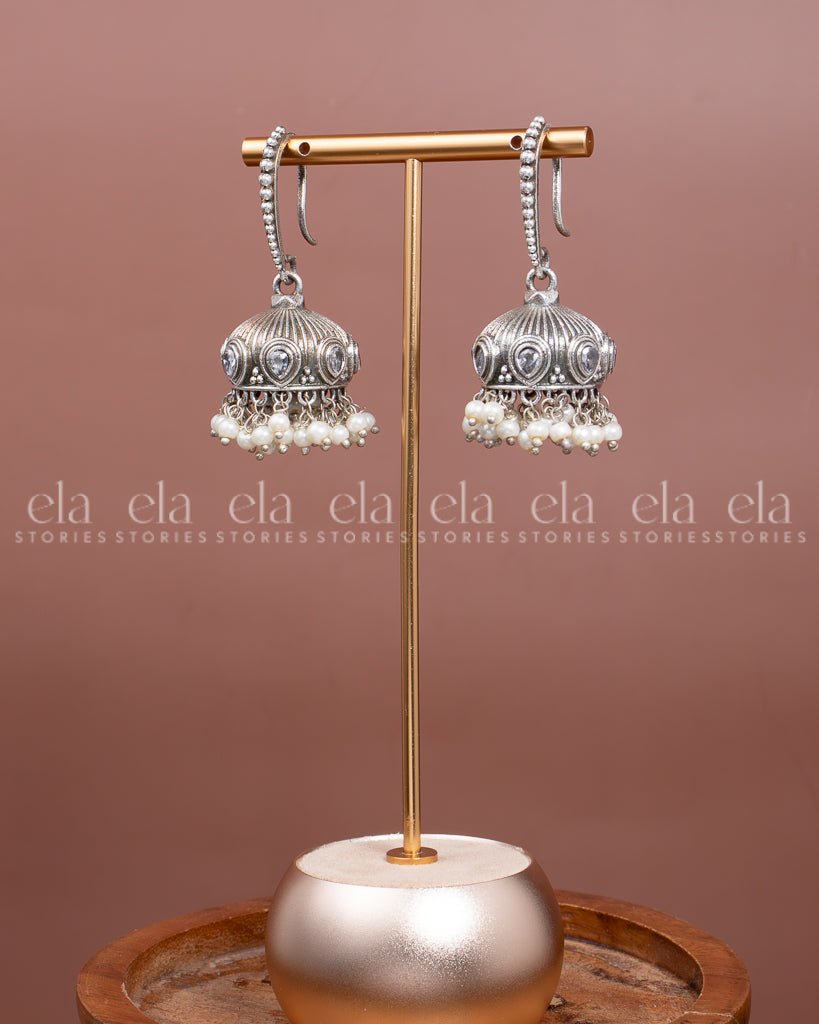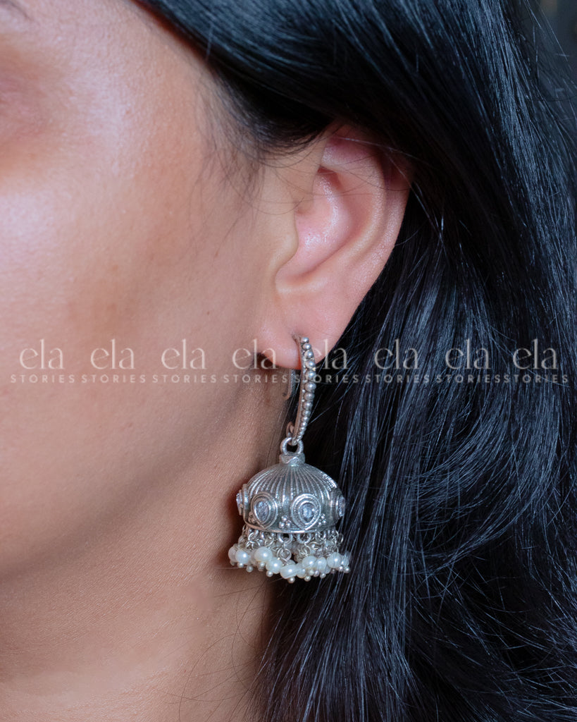 Tribal Hoop Jhumka - White