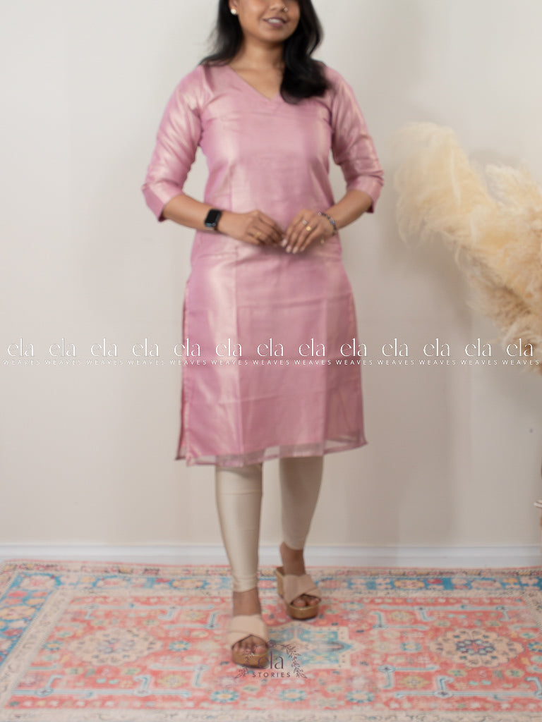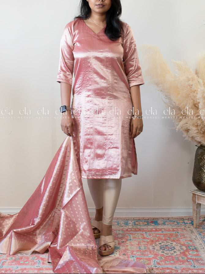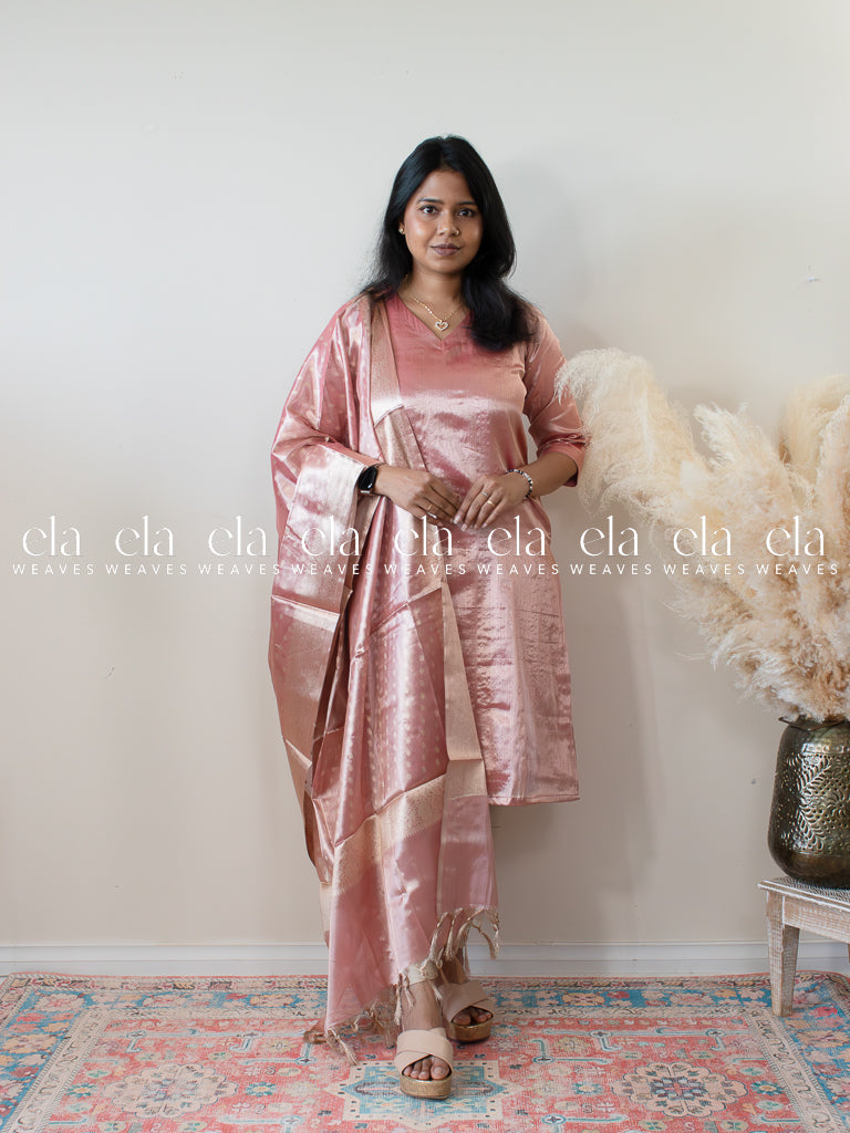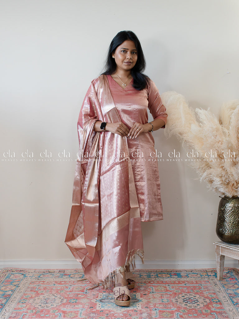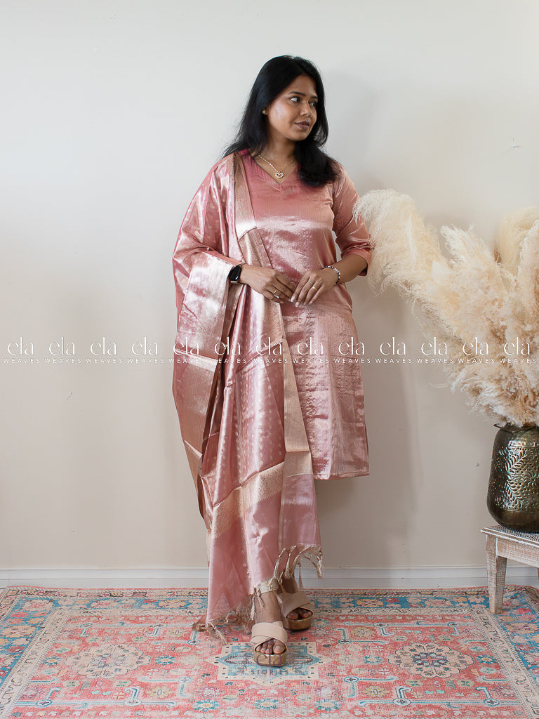 Pink - Banaras Premium Tissue Kurta with Designer Dupatta