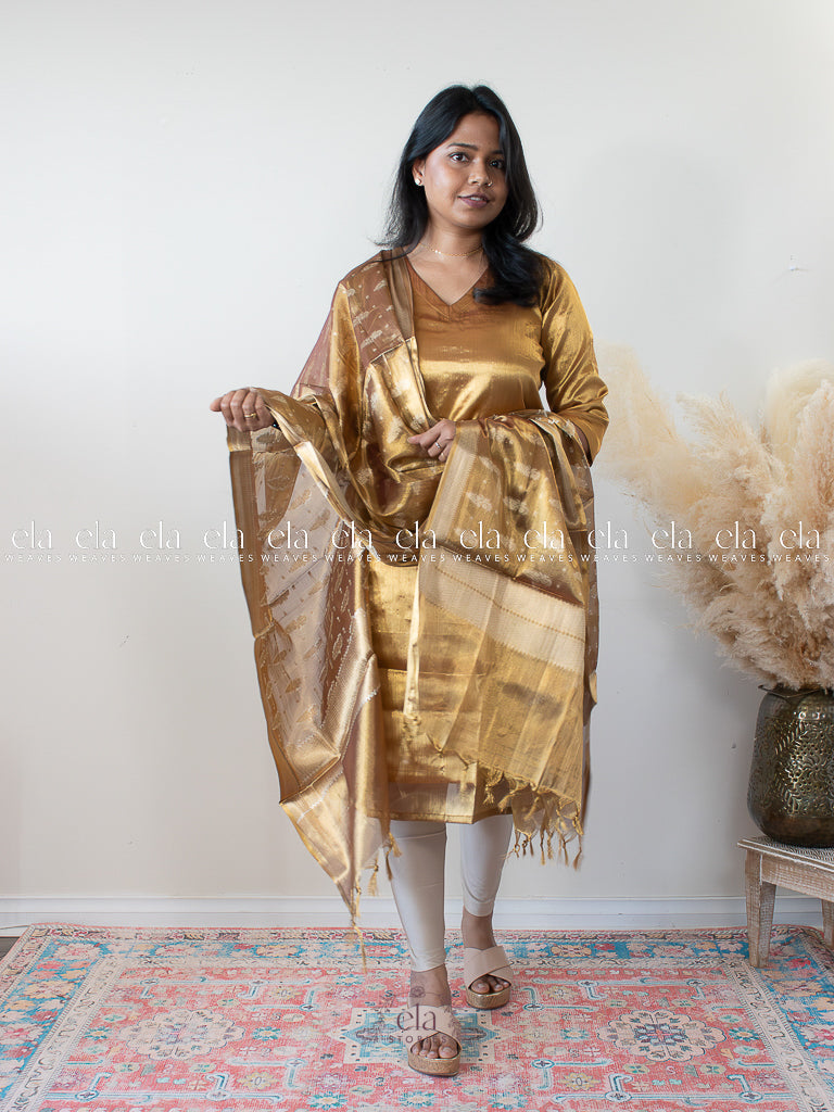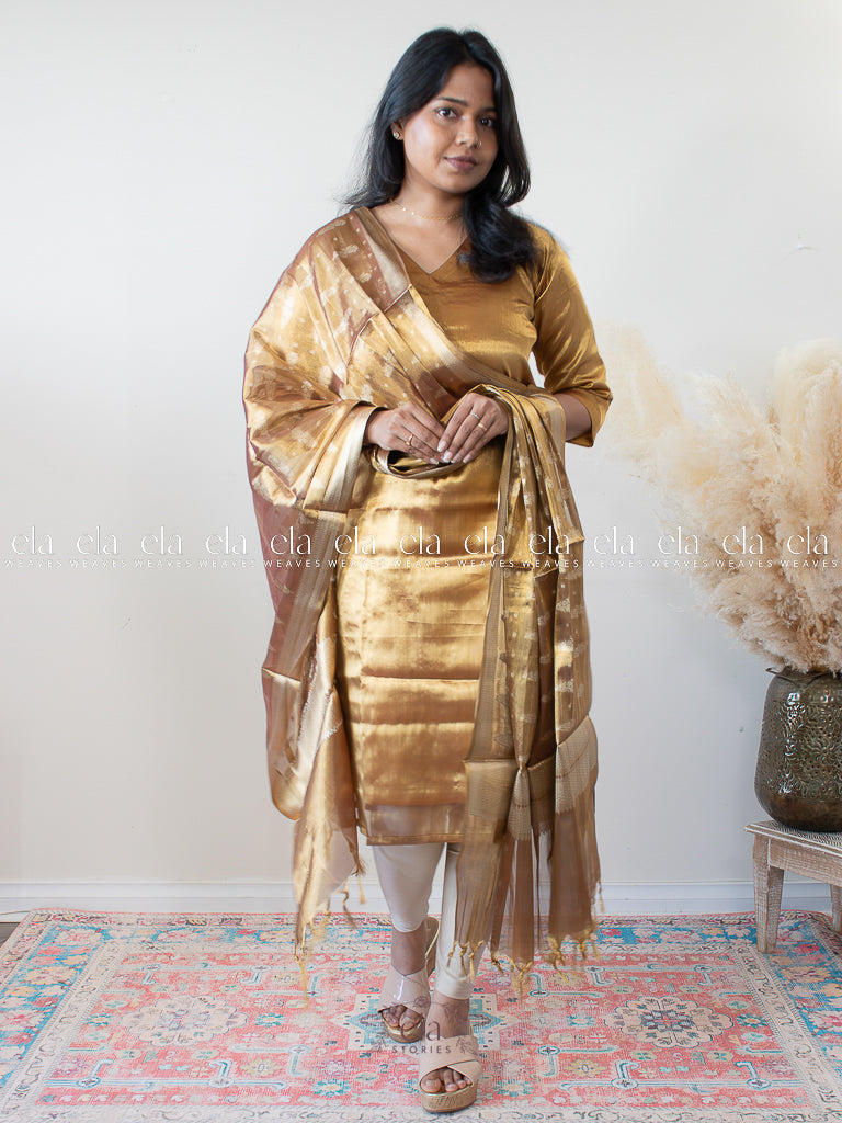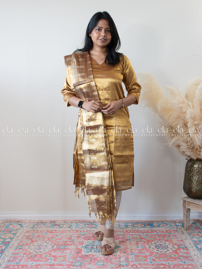 Mustard - Banaras Premium Tissue Kurta with Designer Dupatta