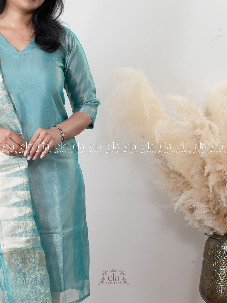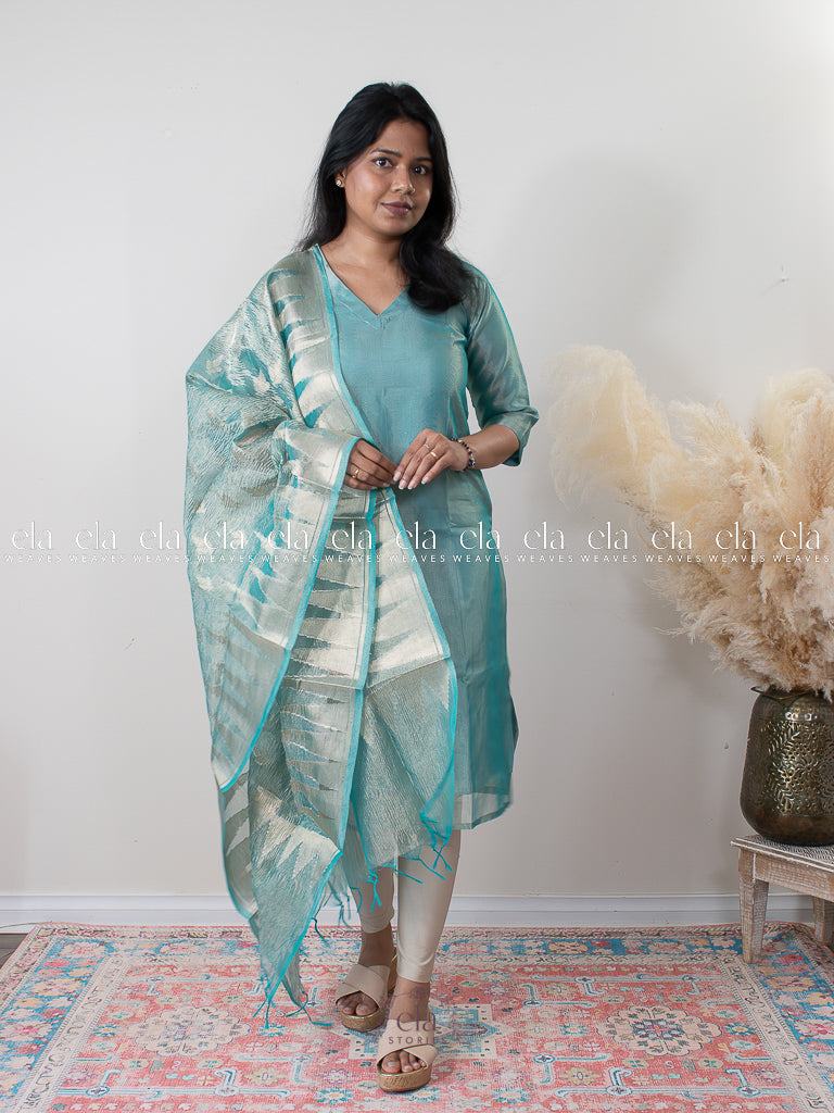 Blue - Banaras Premium Tissue Kurta with Designer Dupatta