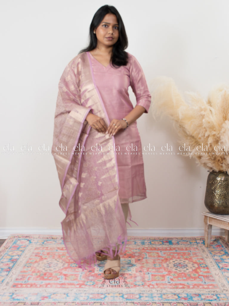 Lilac - Banaras Premium Tissue Kurta with Designer Dupatta