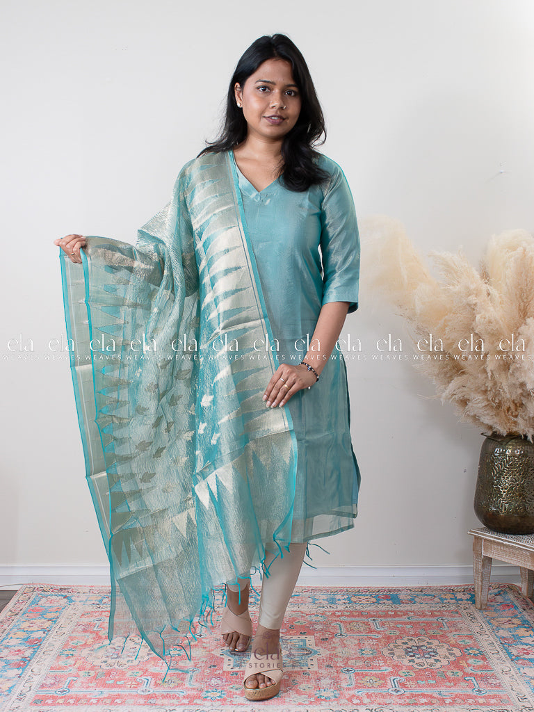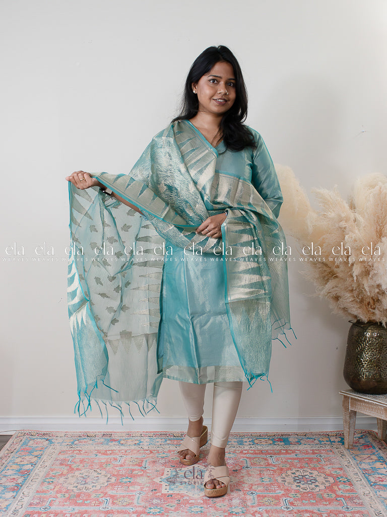 Blue - Banaras Premium Tissue Kurta with Designer Dupatta
