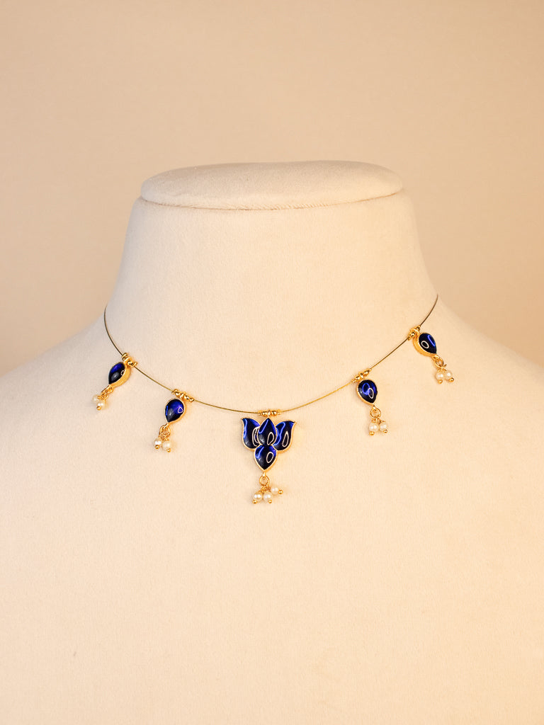The wire used to string the motifs is strong and cannot be broken by hand, ensuring durability despite its delicate look. The motifs and figurines, like the lotus, parrot, and coin designs, are made with premium materials. While locks and tiny components may naturally tarnish due to individual body conditions, this will not affect the overall elegance, as the pendant remains the centerpiece.