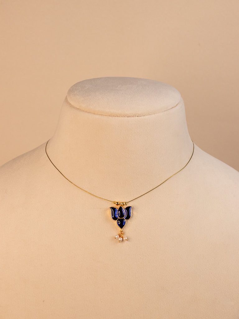 The wire used to string the motifs is strong and cannot be broken by hand, ensuring durability despite its delicate look. The motifs and figurines, like the lotus, parrot, and coin designs, are made with premium materials. While locks and tiny components may naturally tarnish due to individual body conditions, this will not affect the overall elegance, as the pendant remains the centerpiece.