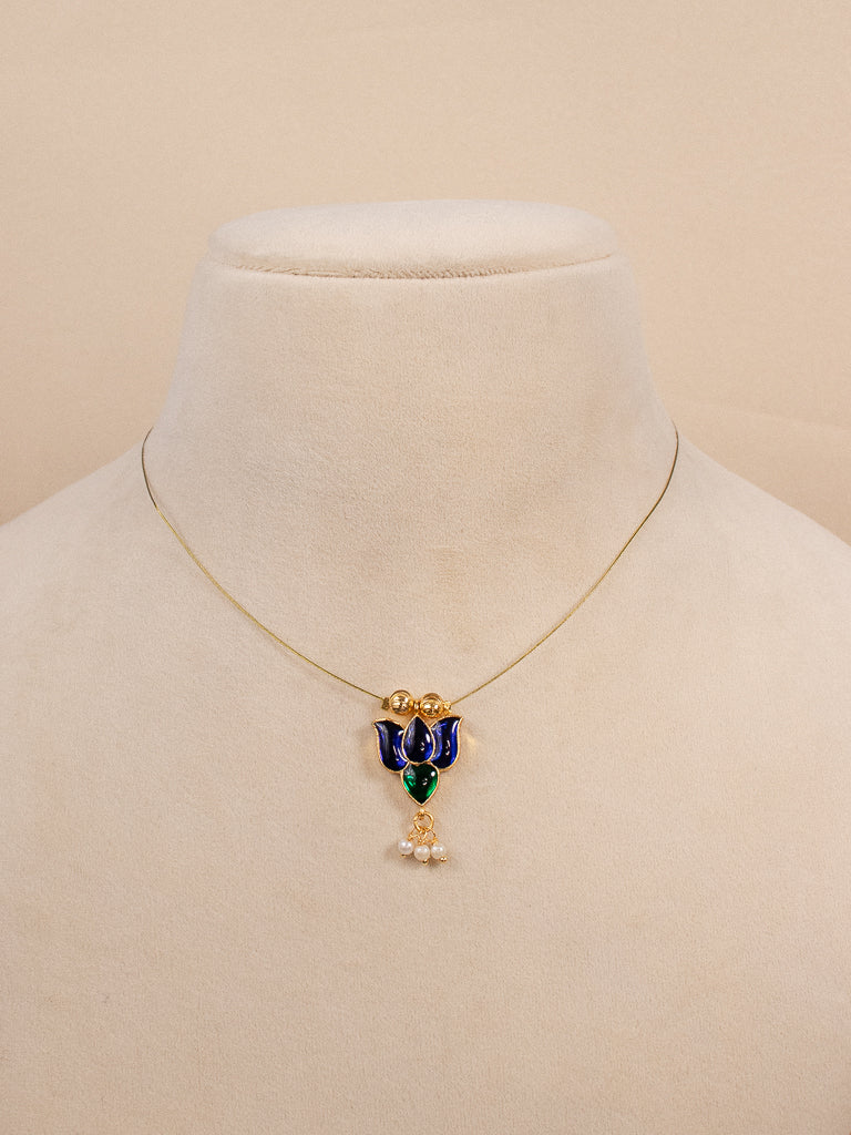 The wire used to string the motifs is strong and cannot be broken by hand, ensuring durability despite its delicate look. The motifs and figurines, like the lotus, parrot, and coin designs, are made with premium materials. While locks and tiny components may naturally tarnish due to individual body conditions, this will not affect the overall elegance, as the pendant remains the centerpiece.