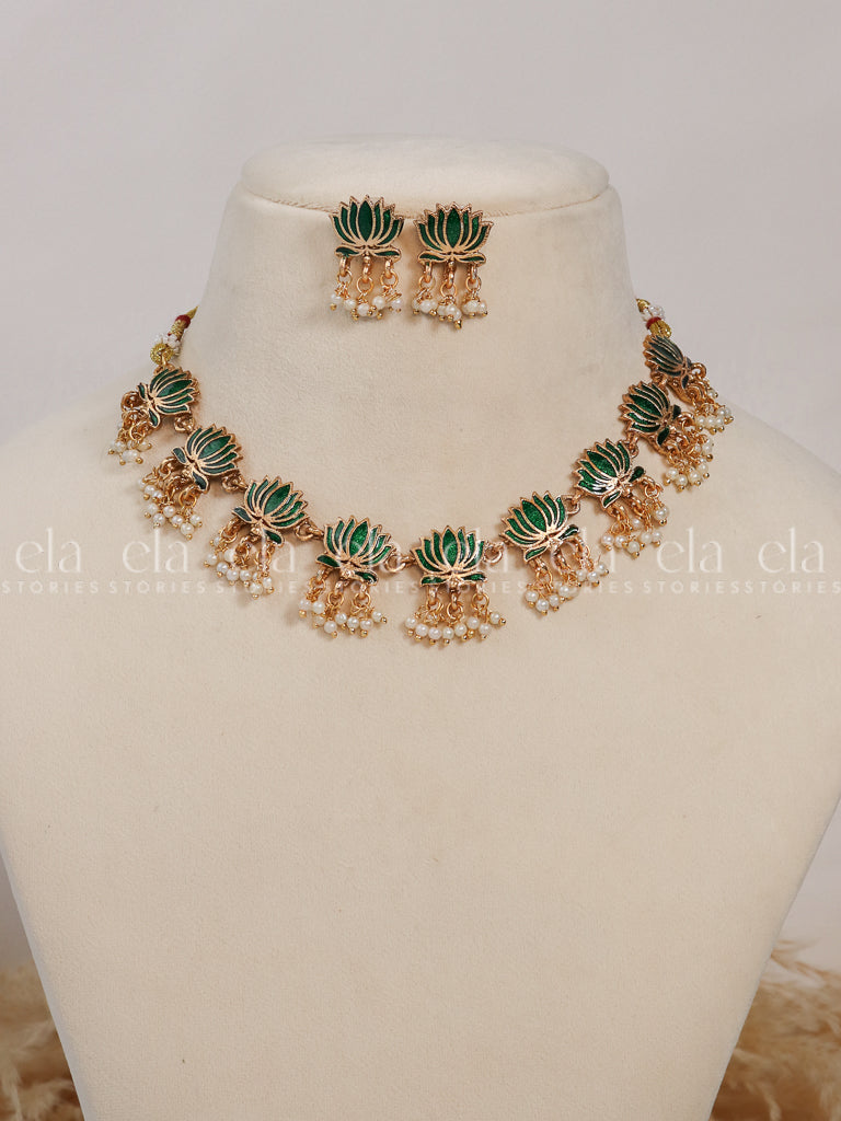 Lotus Necklace - S2 - Green - Pocket Friendly
