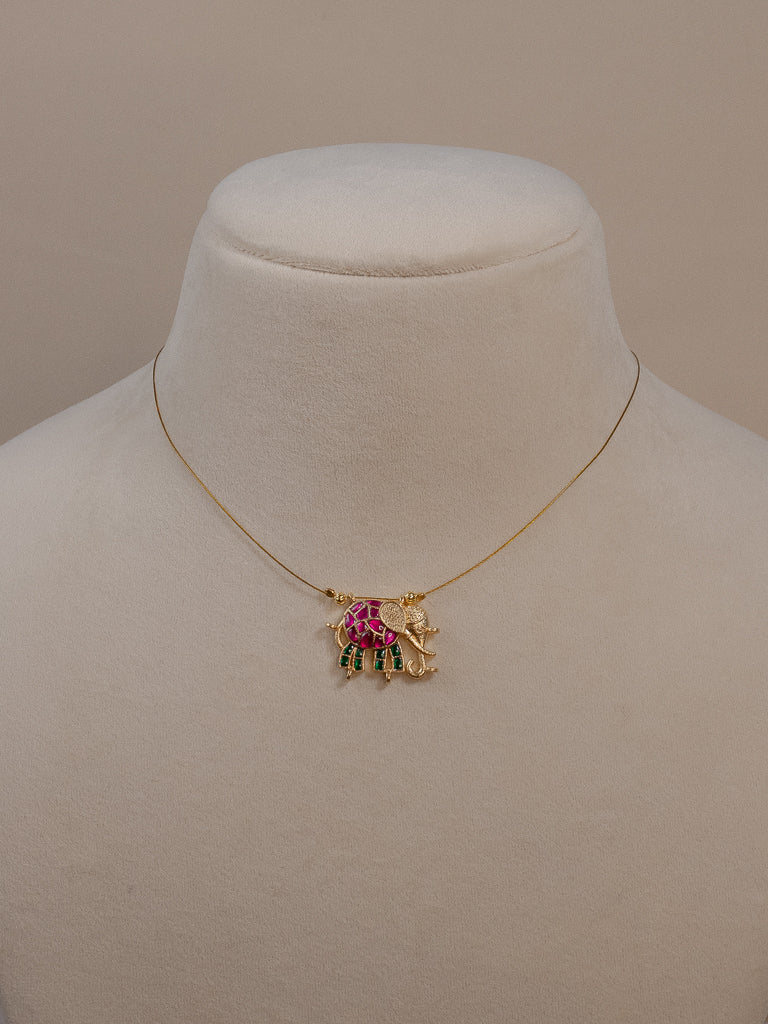 Pendentif Éléphant Jadau Airy - Rubis et Vert