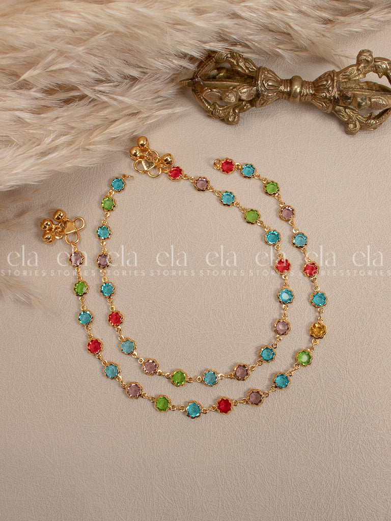 Bracelet de cheville floral - Rubis/Vert