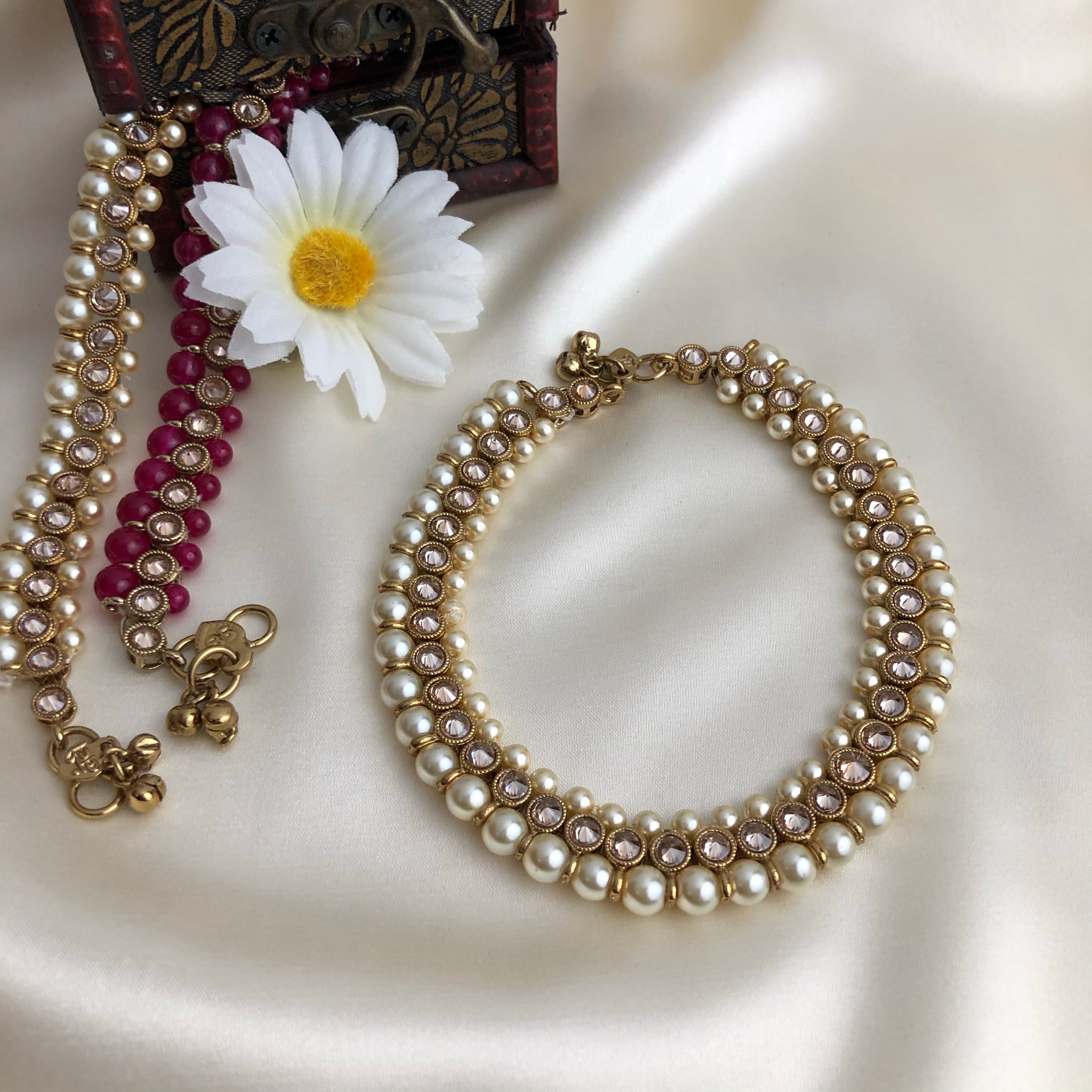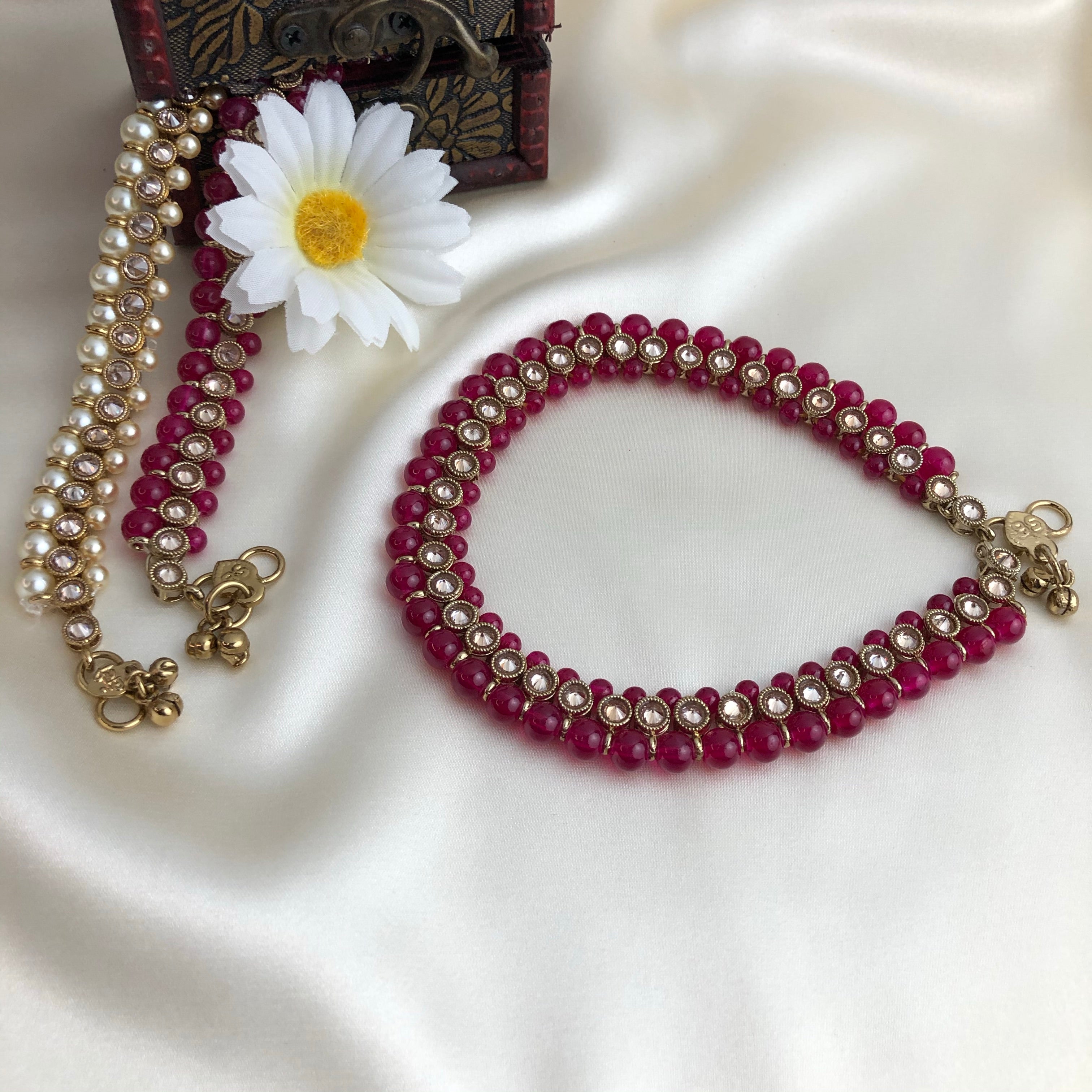 Bracelets de cheville Polki & Beads - Rubis et perle