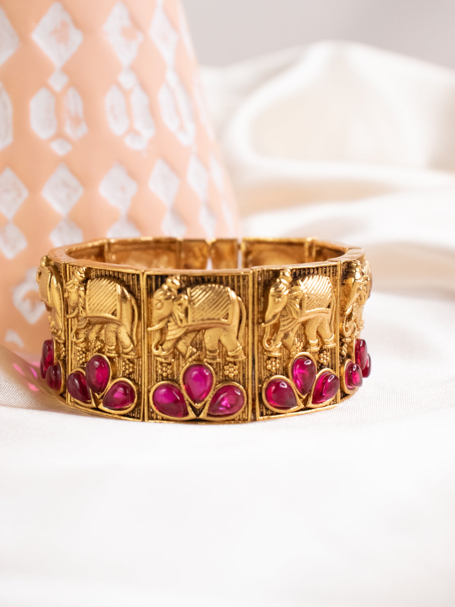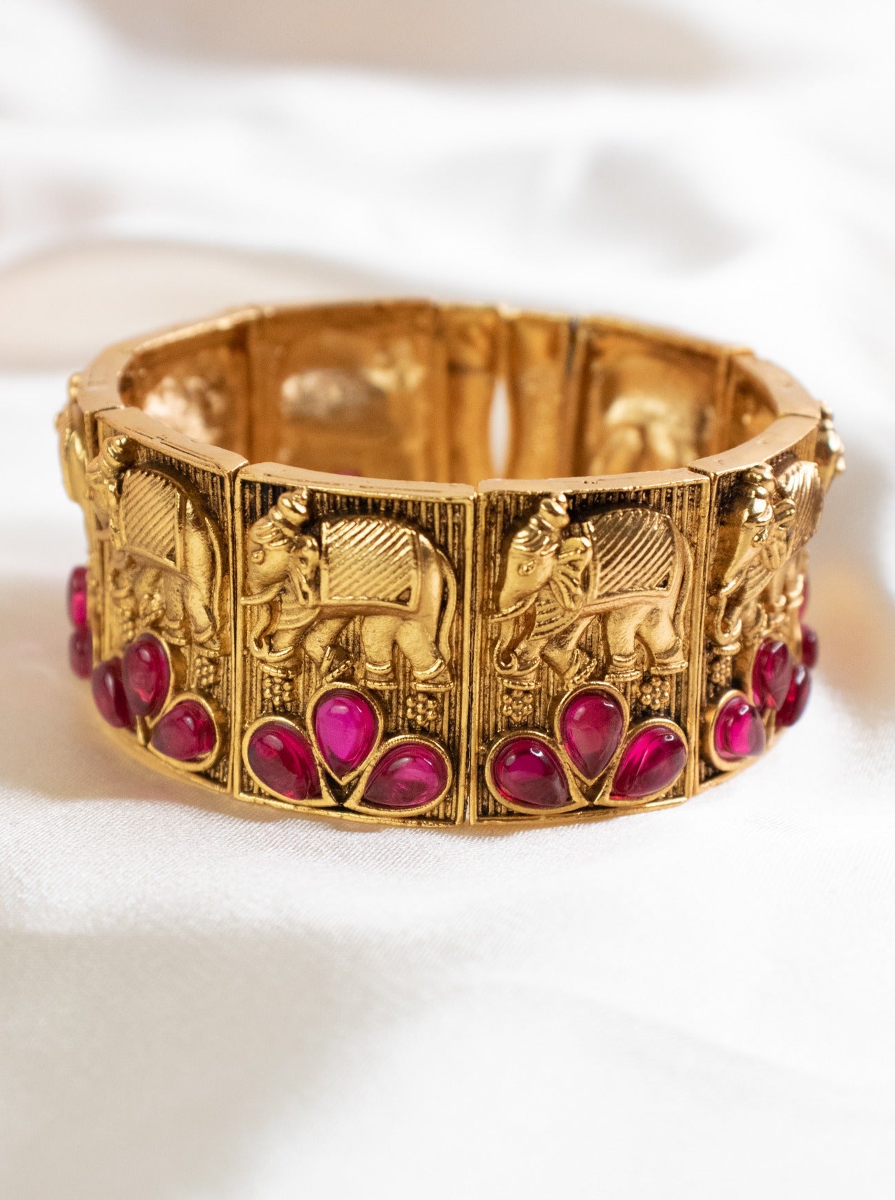 - 1 bracelet doré avec pierres Kemp en rubis.