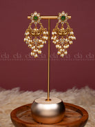 Gold Tone Dangler Earrings - Green