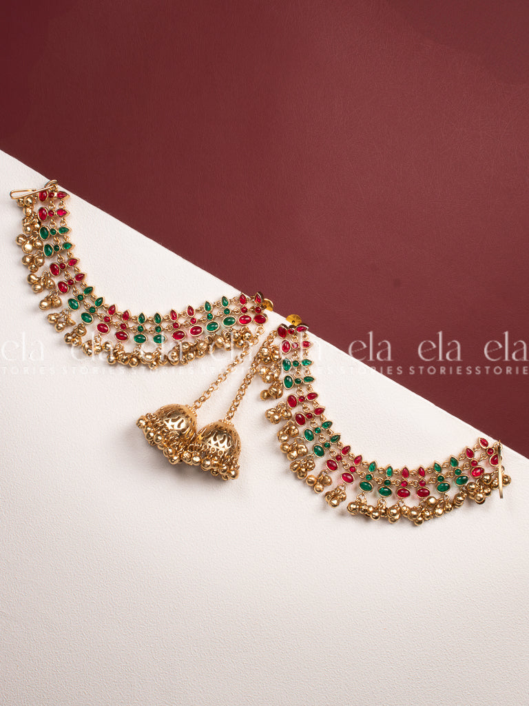 Jhumka avec boucle d'oreille - Rubis/Vert