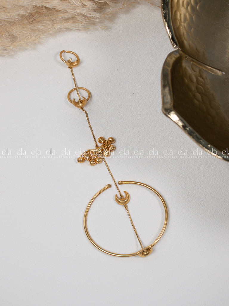 Ancré dans la riche culture indienne, ce Hathphool contemporain revisite un accessoire intemporel pour la muse moderne. Parfait pour les mariages, les occasions festives ou pour ajouter une touche d'élégance au quotidien, laissez parler vos mains cette saison.