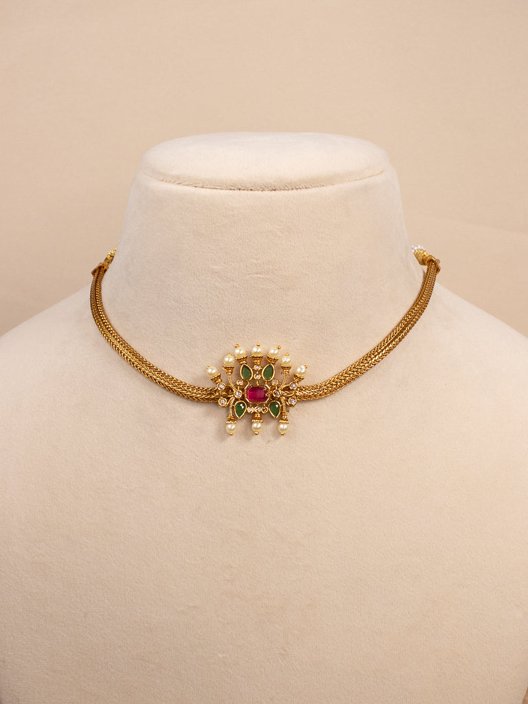 Pendentif rectangulaire - Ras du cou/Court - Rubis/Vert - Chaîne flexible/Adapté aux enfants