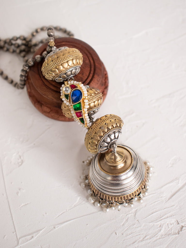 - Fabriqué avec une base en laiton de haute qualité avec une finition en argent allemand. Les motifs sont des pachi kundan en métal cuivré.