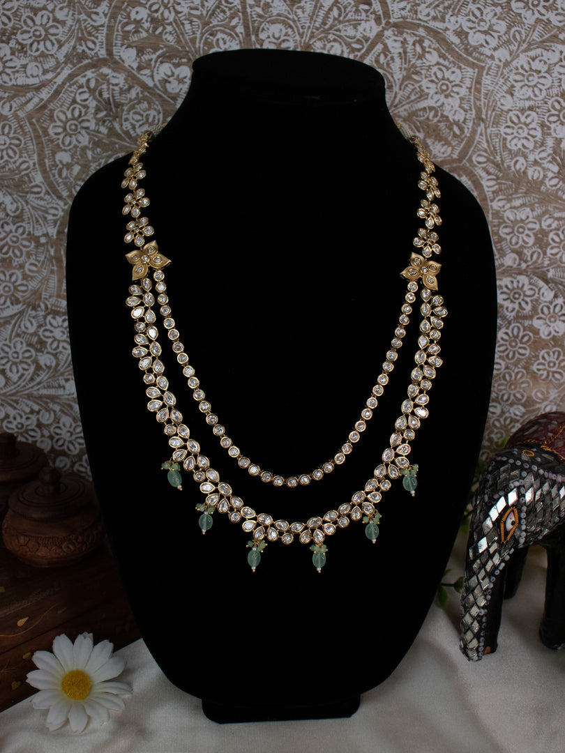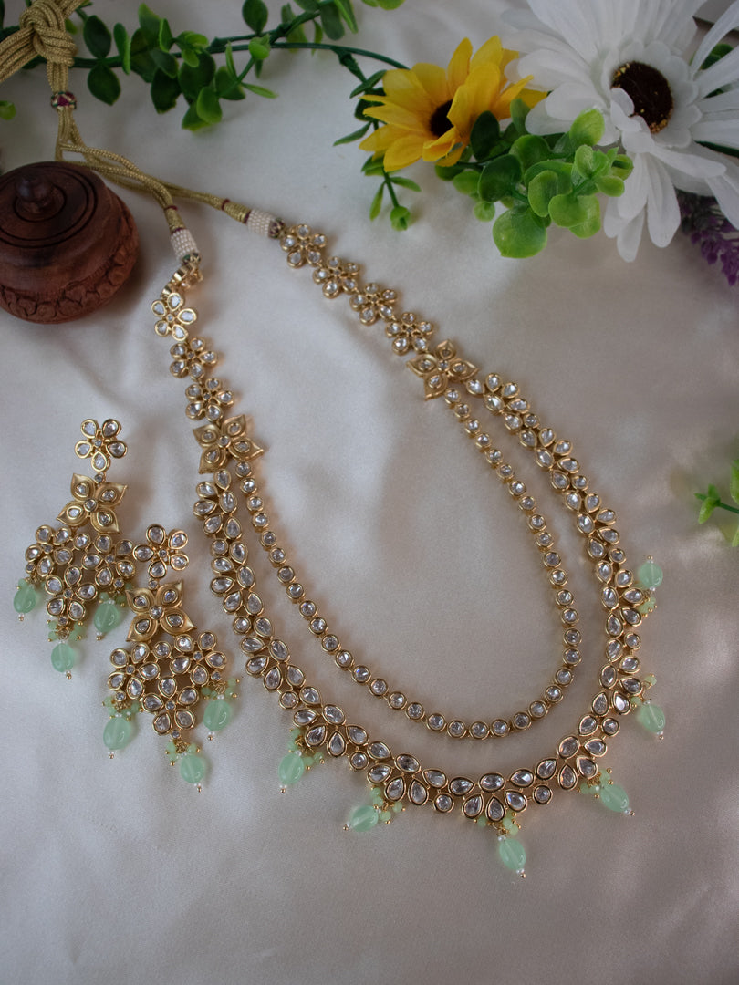 Ensemble de colliers Kundan - Vert pastel