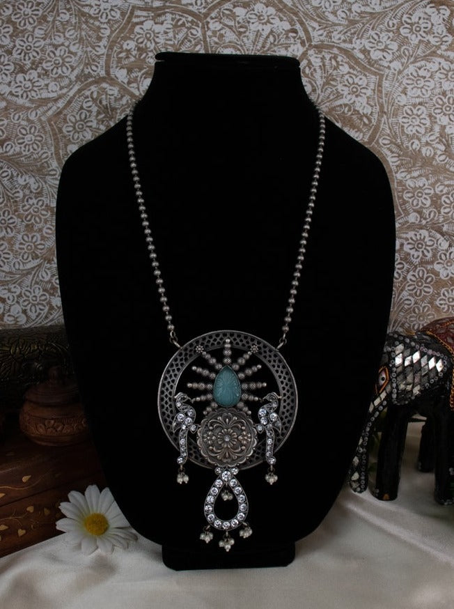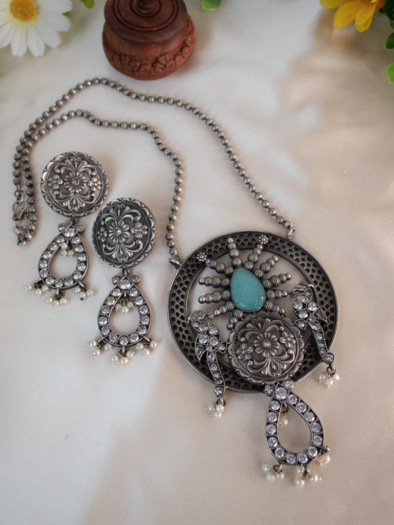 Ensemble tribal avec pendentif paon - Bleu