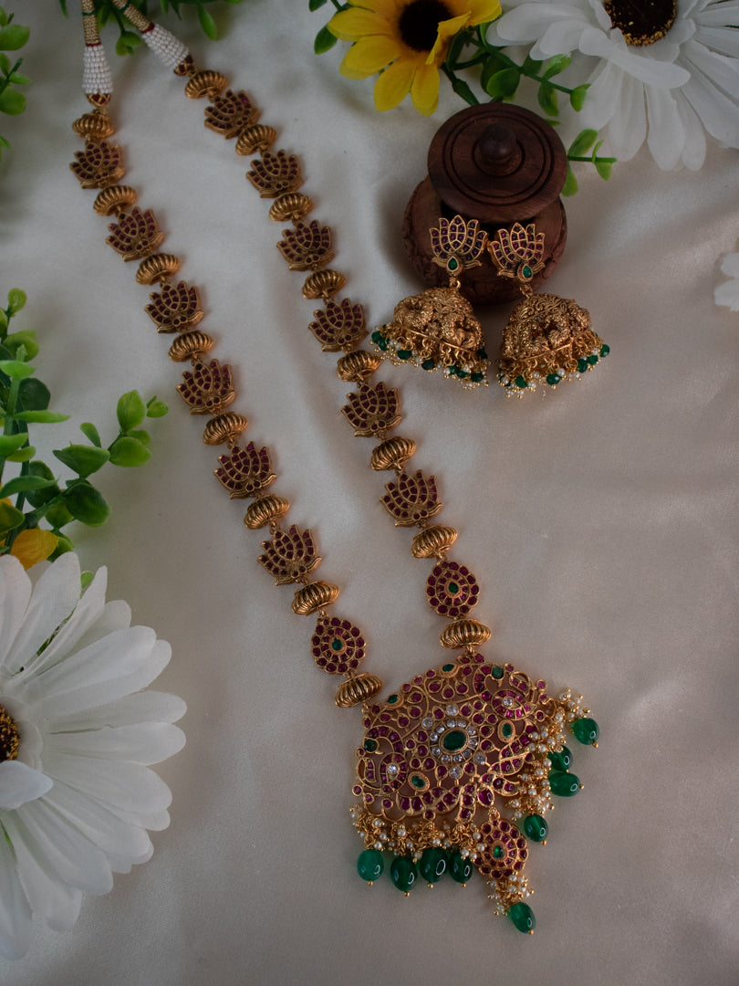 • Cet ensemble comprend un collier et une paire de magnifiques jhumkis.