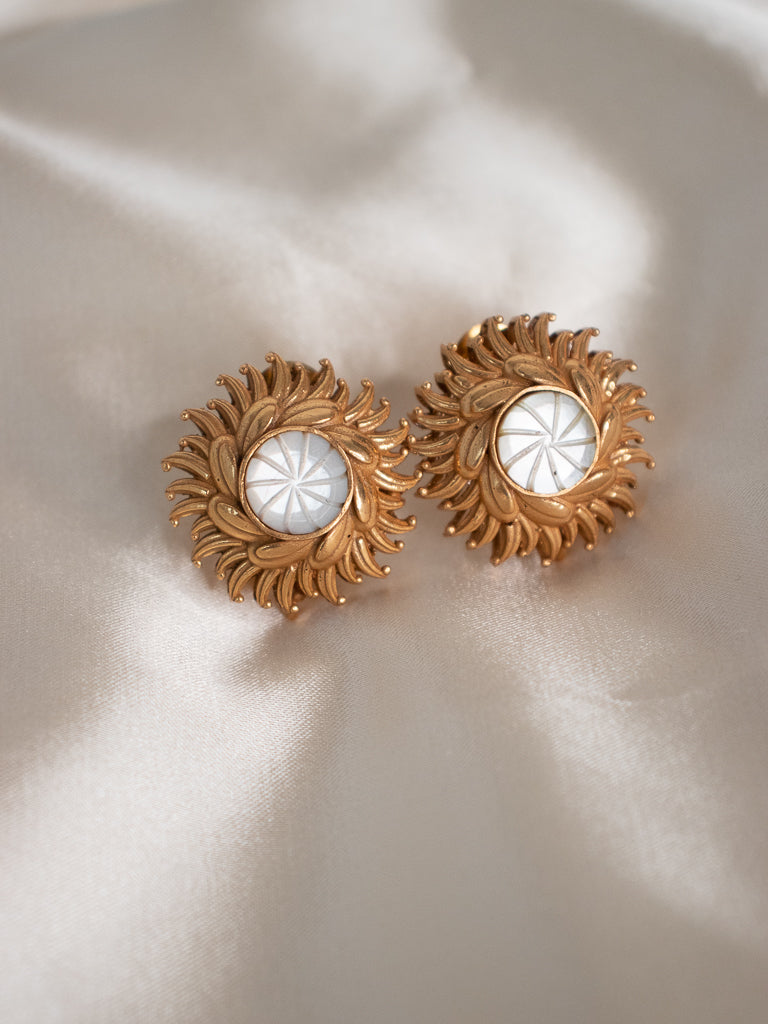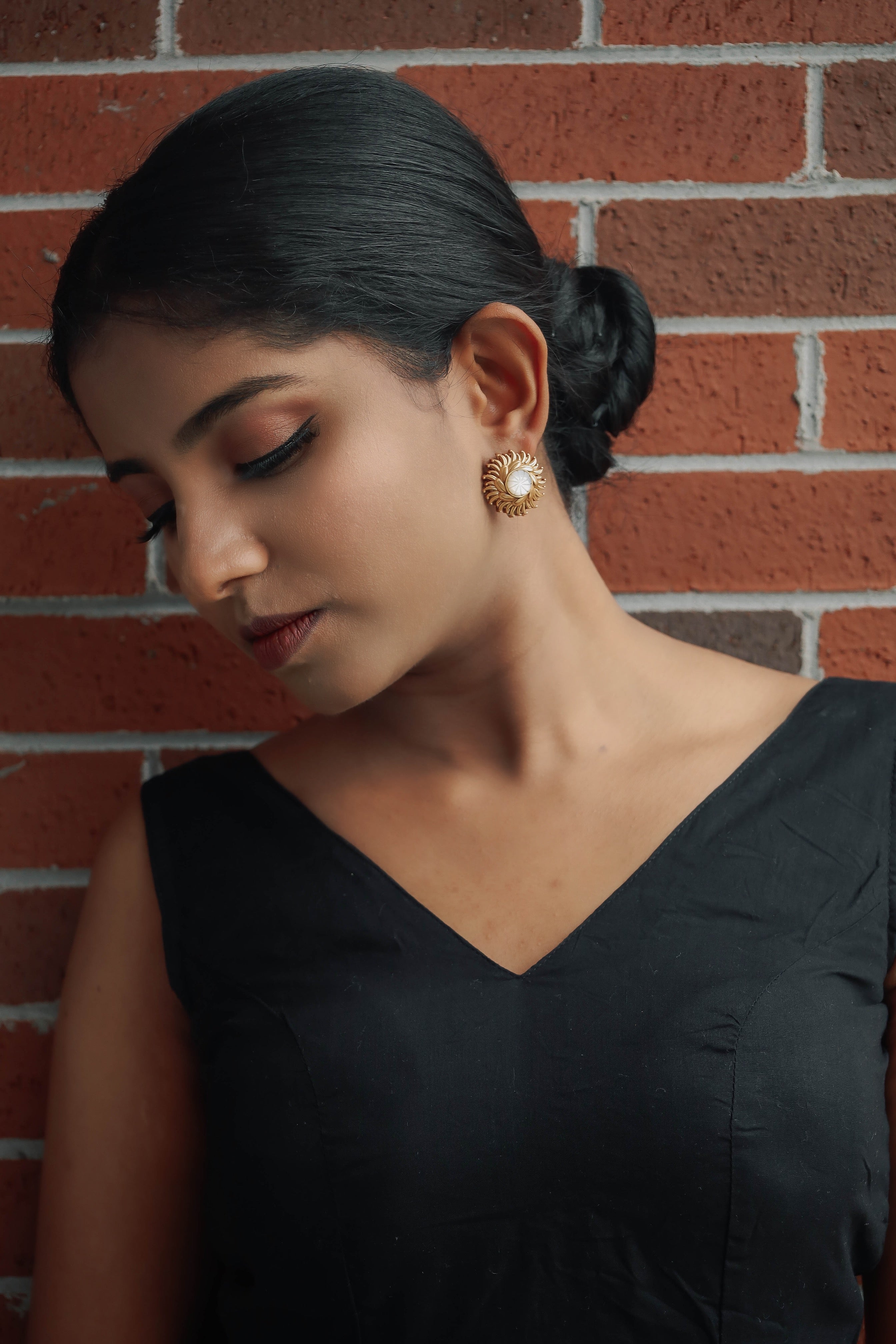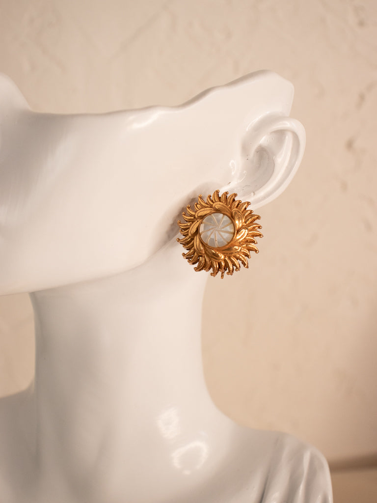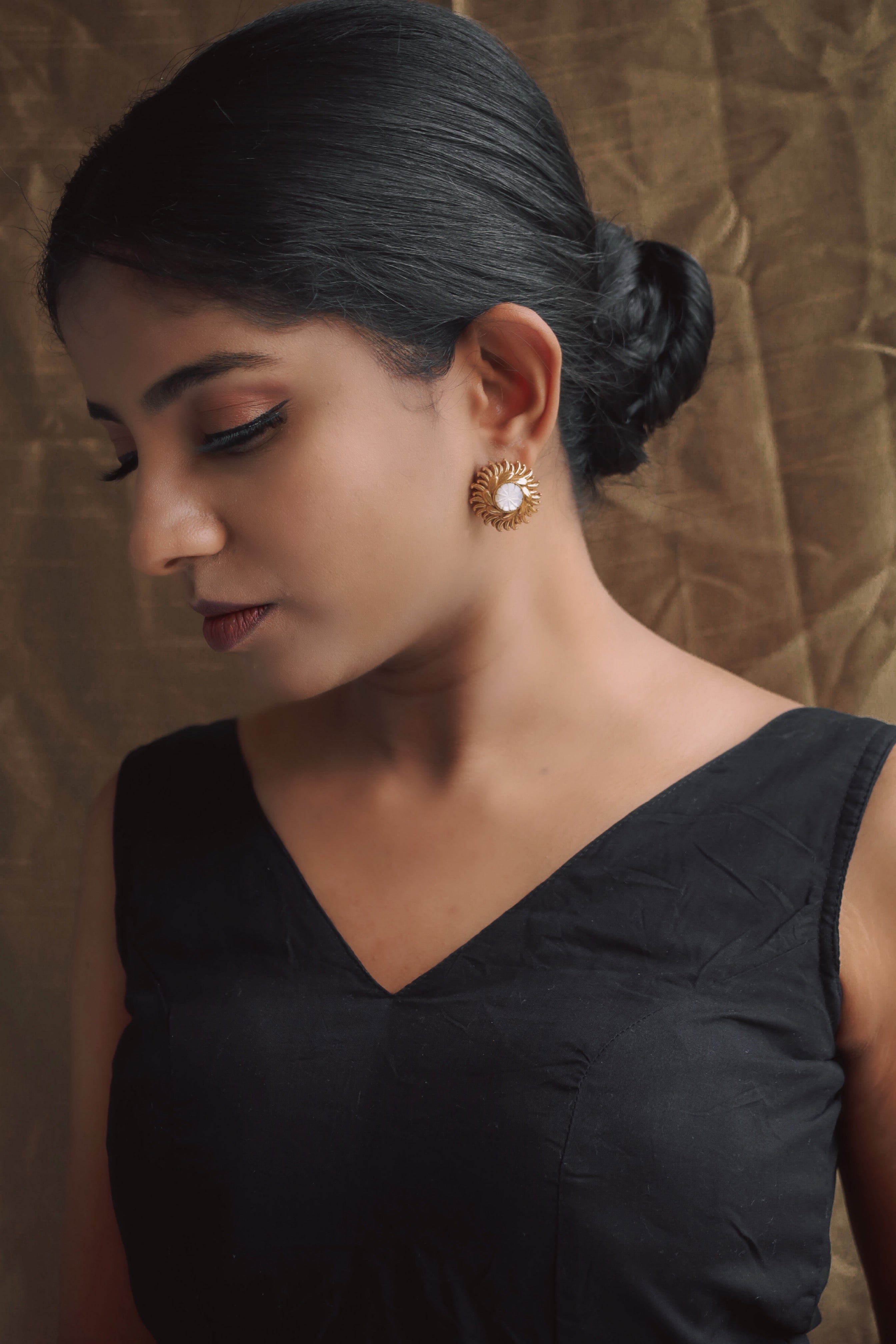 - Boucles d'oreilles imitation or fabriquées en cuivre.
