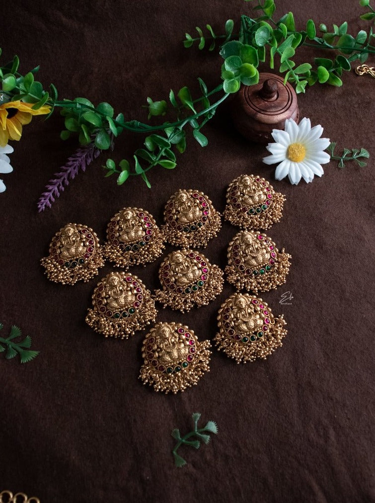 - This bridal set includes long and short necklaces, earrings, hipbelt, tikka, vangi, earchain and jadabillai.