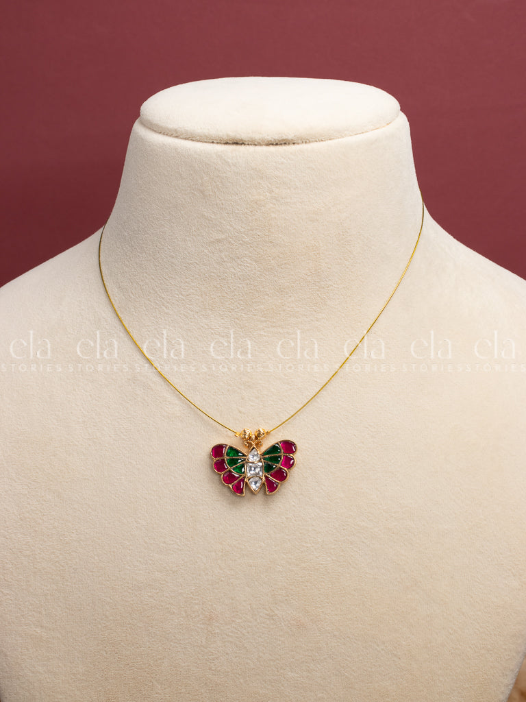 Butterfly Jadau Airy Pendant - Ruby/Green/White