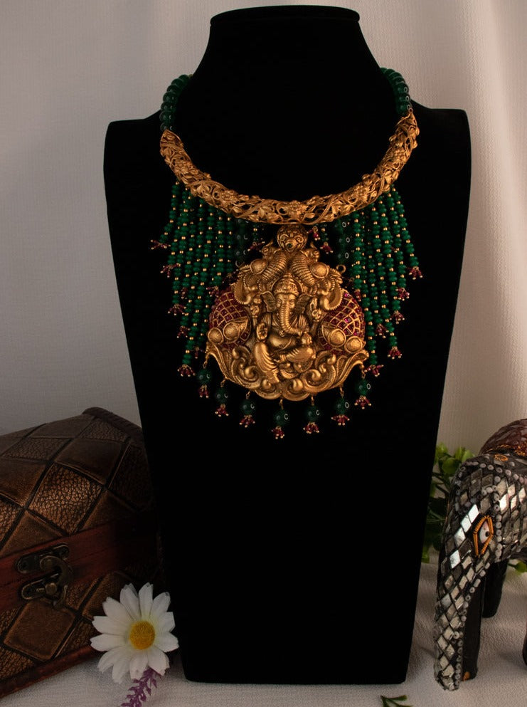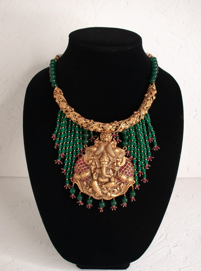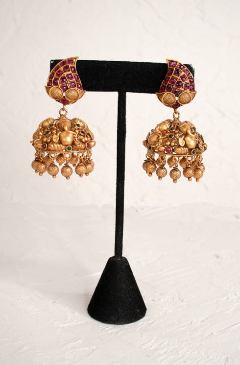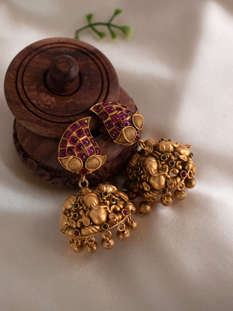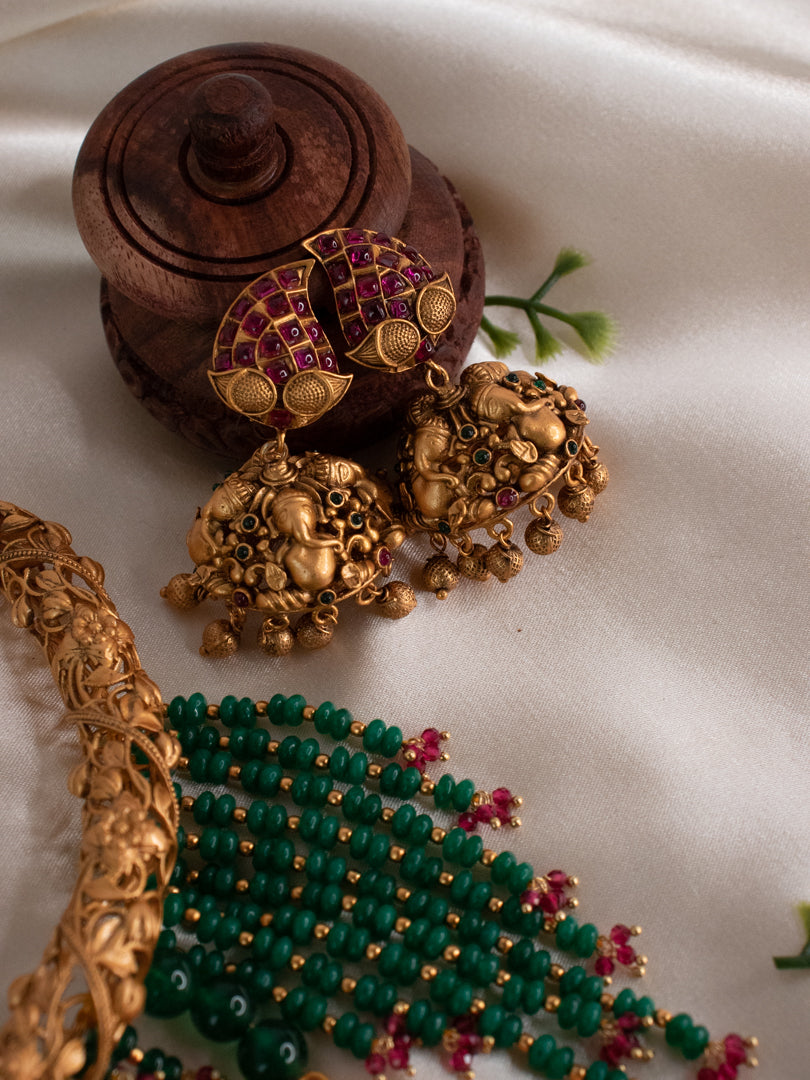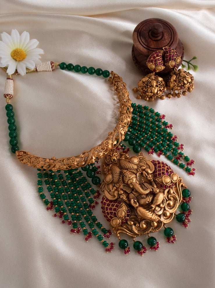 - This set includes a neckpiece and a pair of beautiful jhumkis.