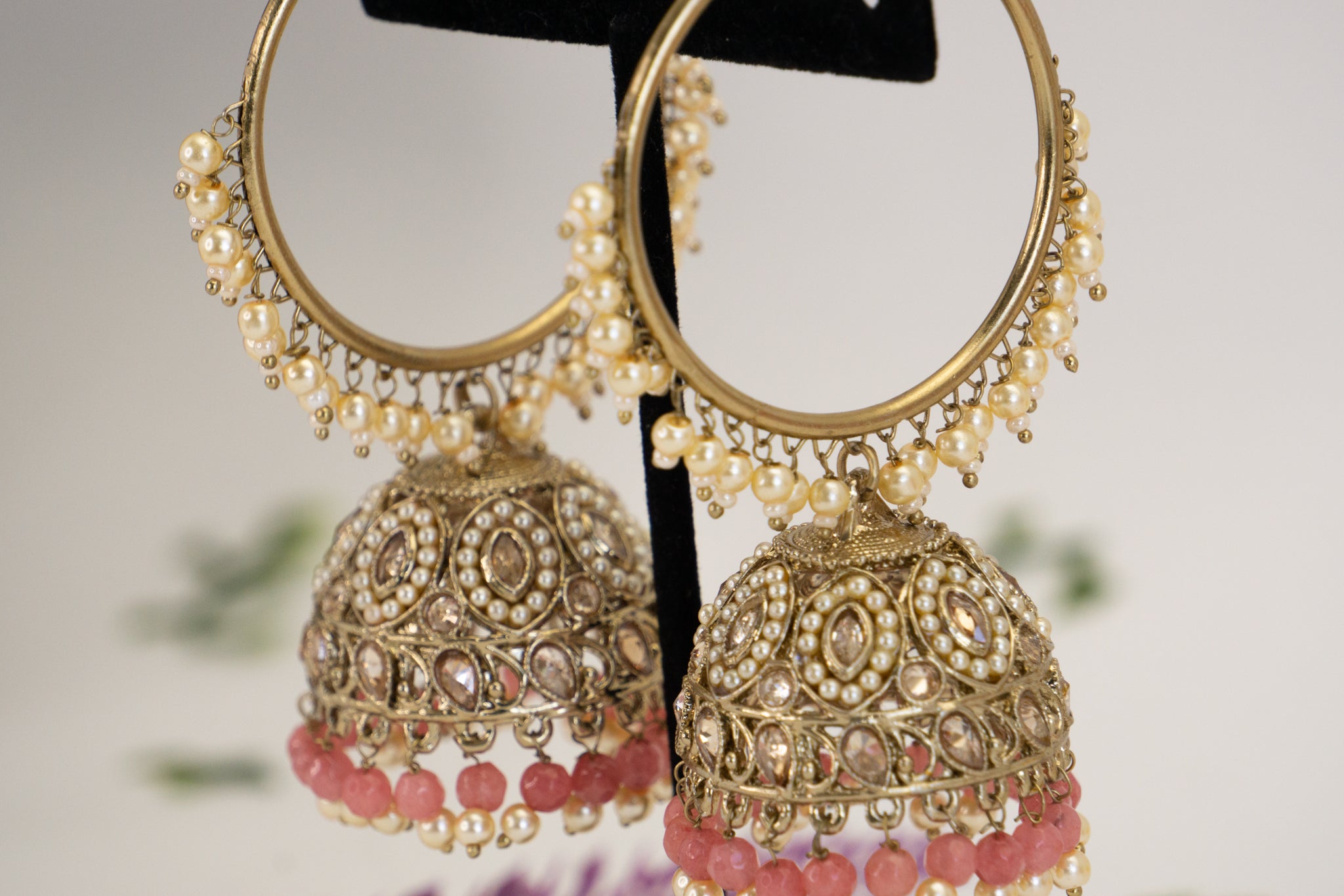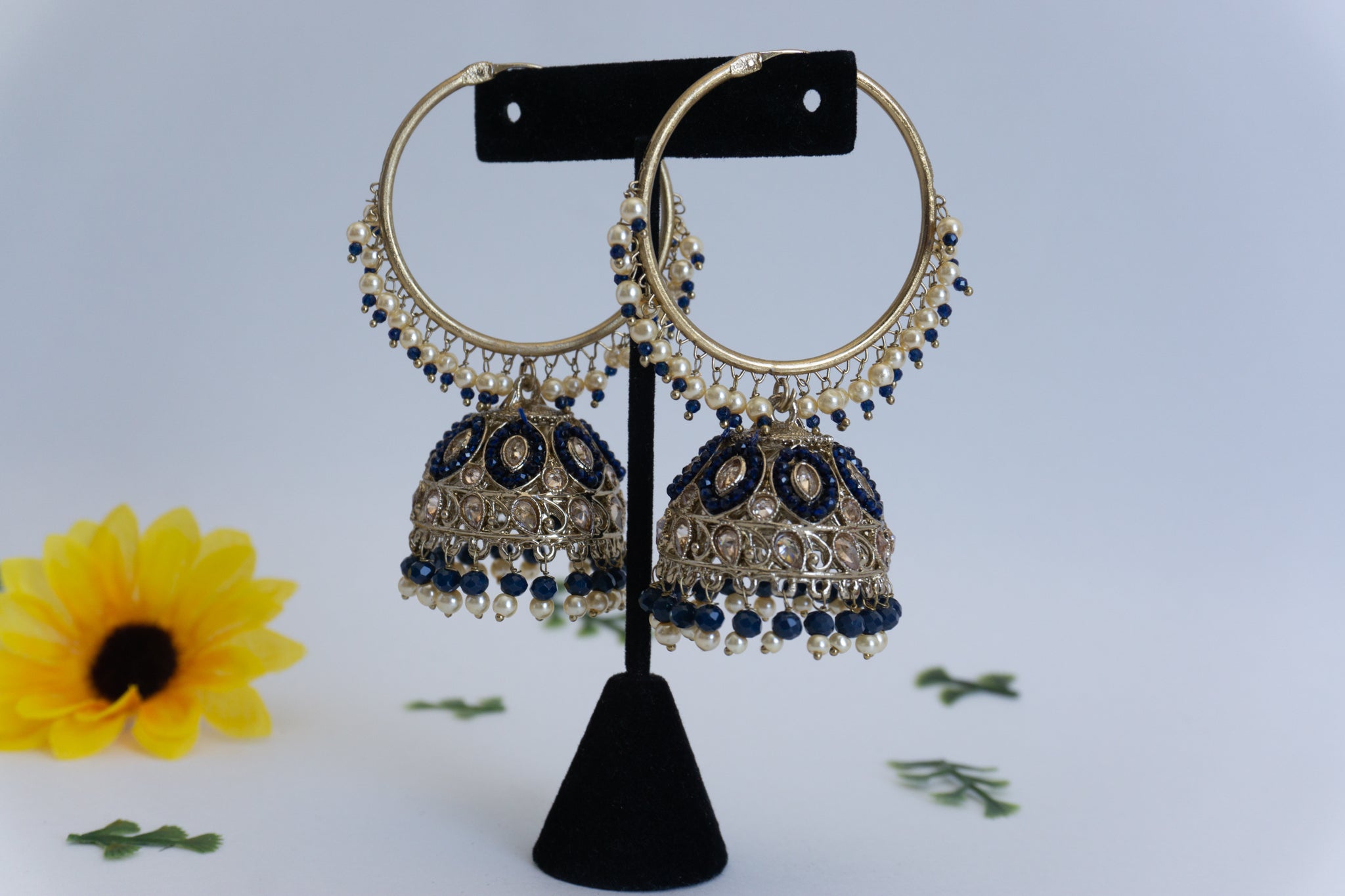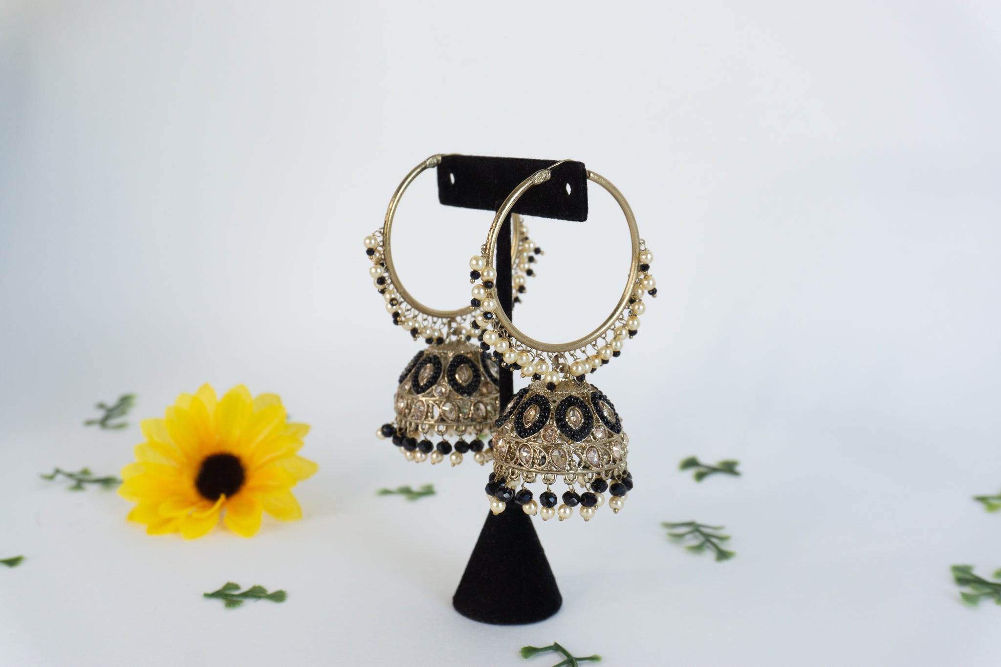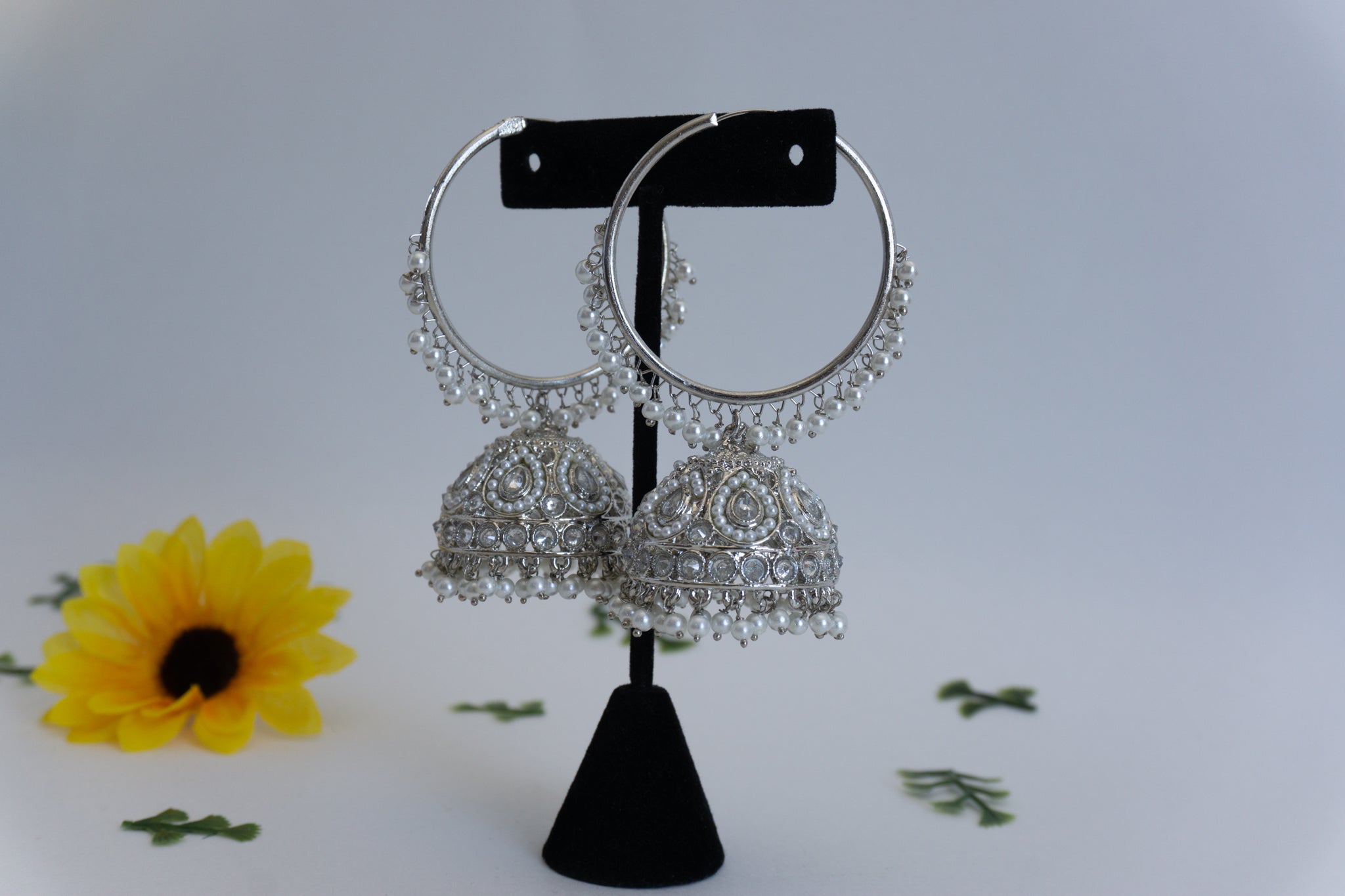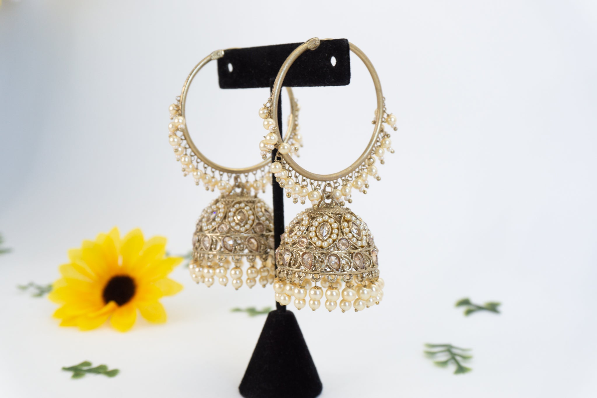 - Premium Quality Jhumkas Studded With Simulated Polki