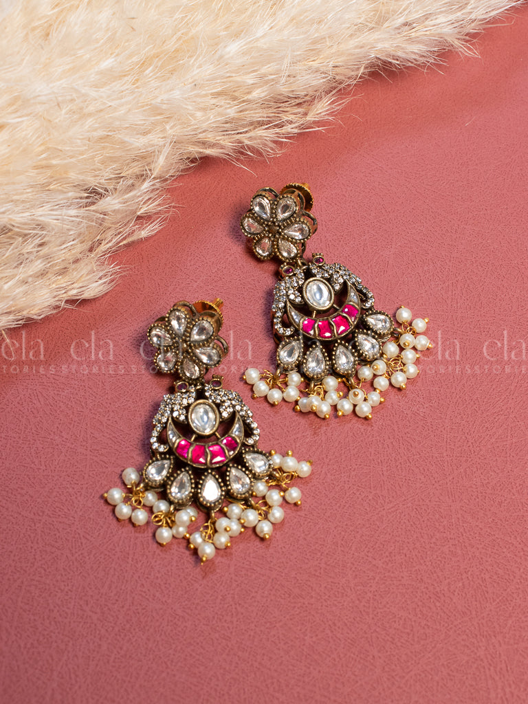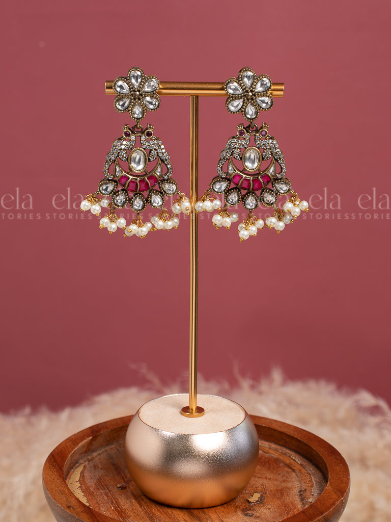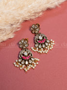 Gold Tone Kundan Tribal Drop - Ruby/White