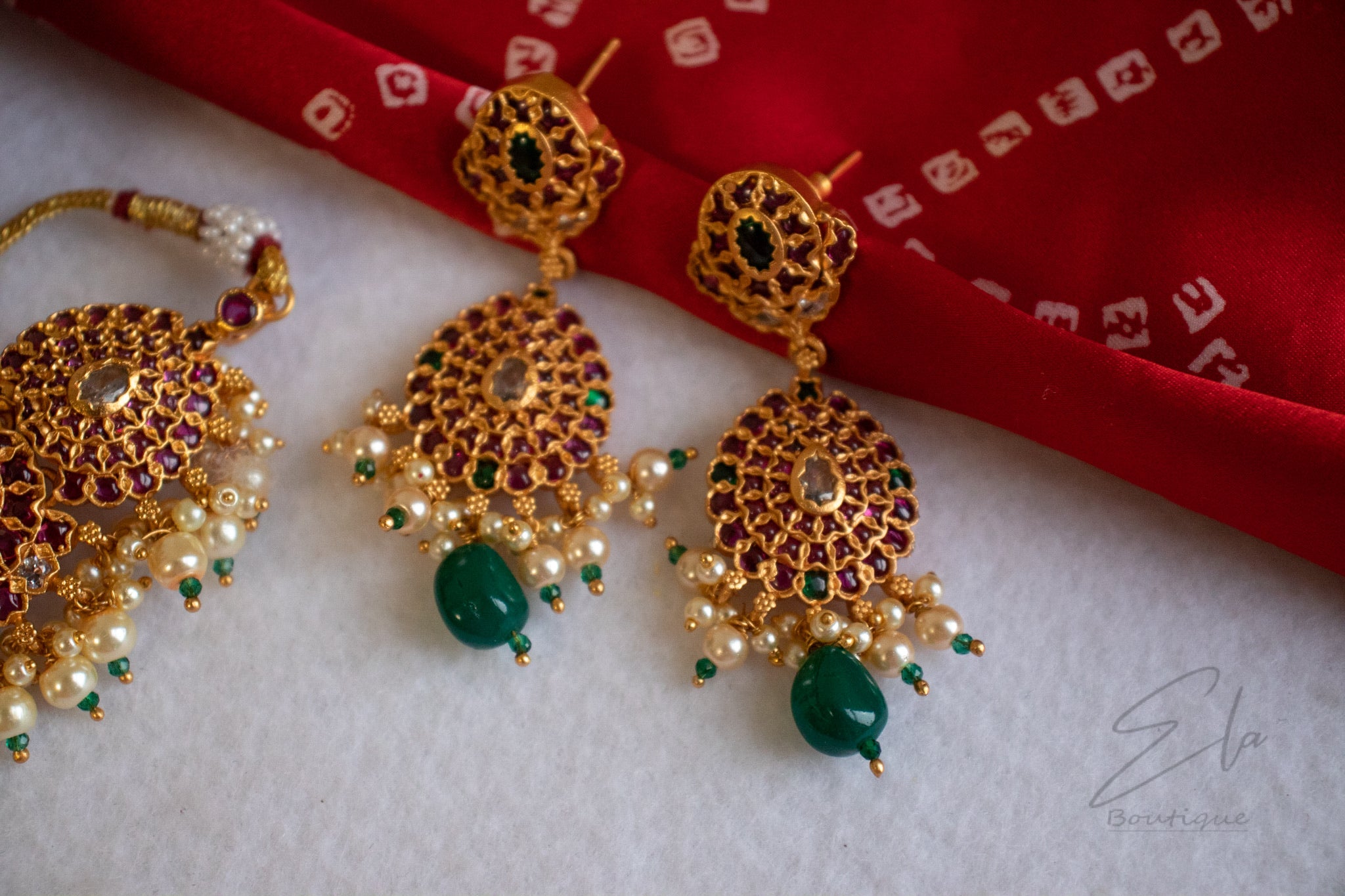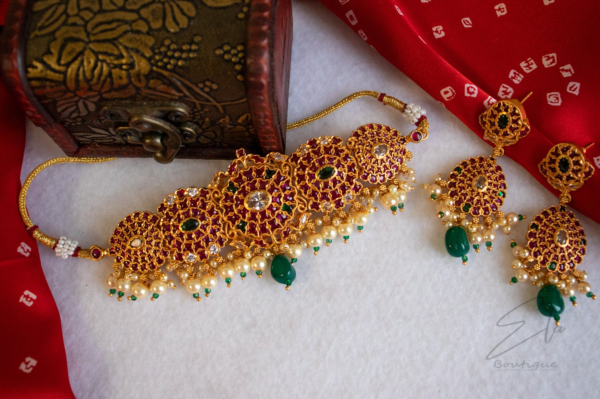 - Consists of neckpiece, earrings and adjustable back rope