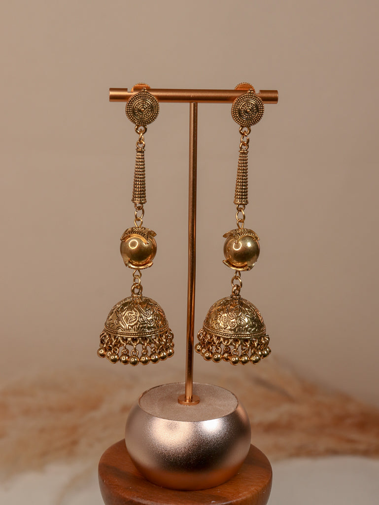 - Measuring at 2.75 inches in drop and 0.5 inches in width, these earrings are made of brass.