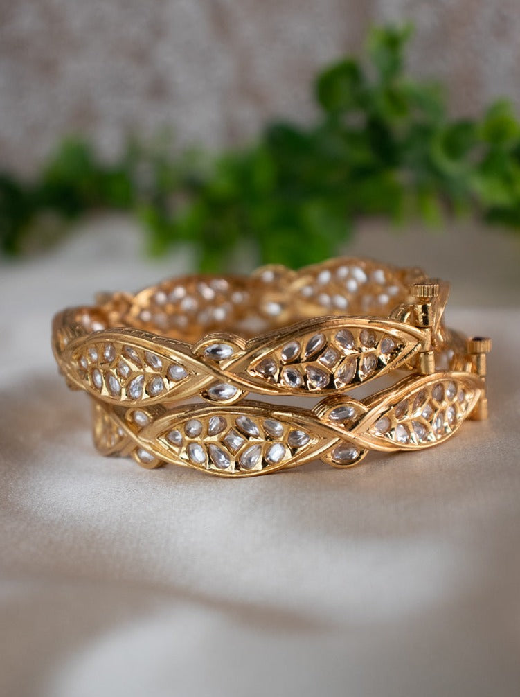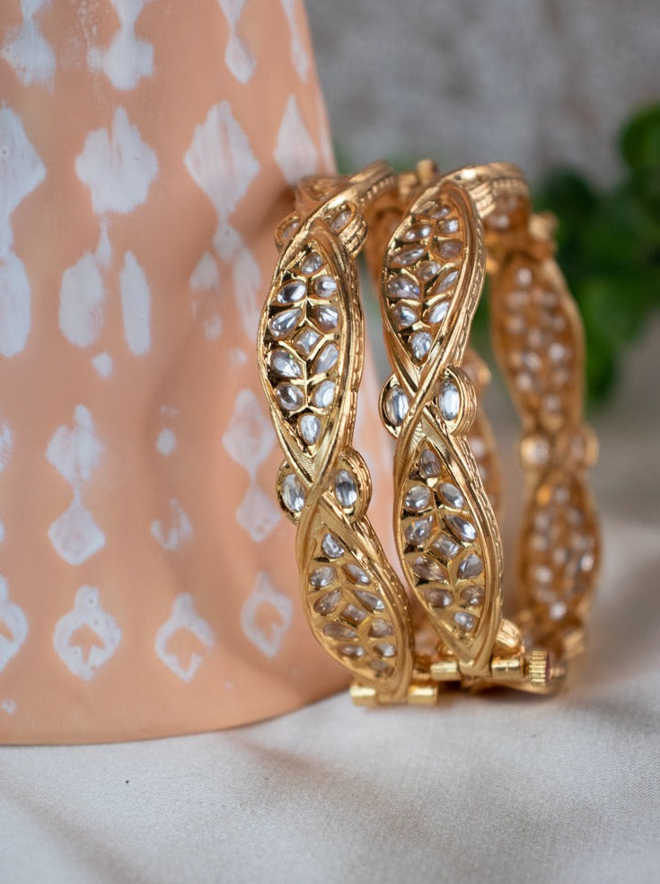 - A stunning kundan gold tone bangles which has an opening clasp and can fit a wrist bigger in size also.