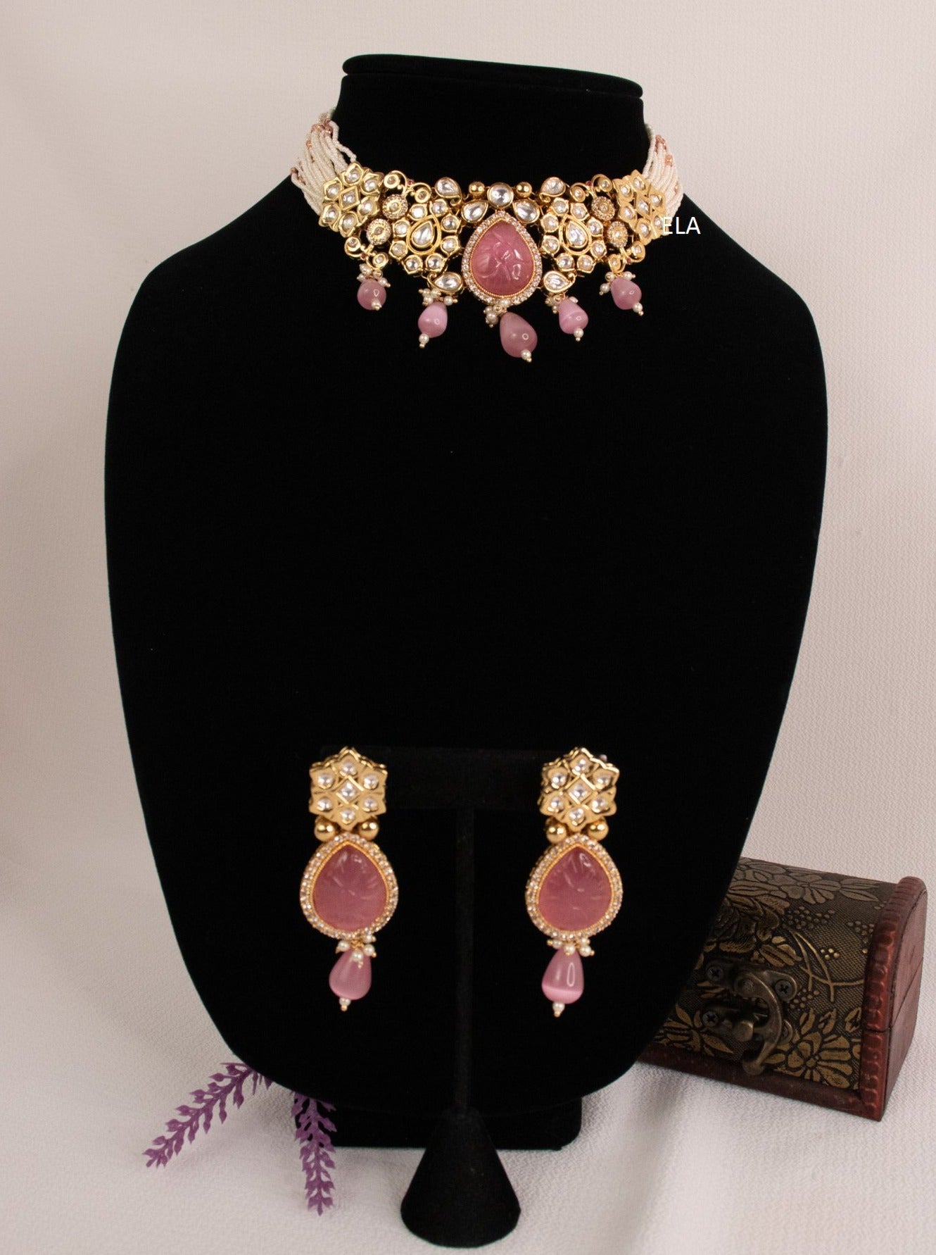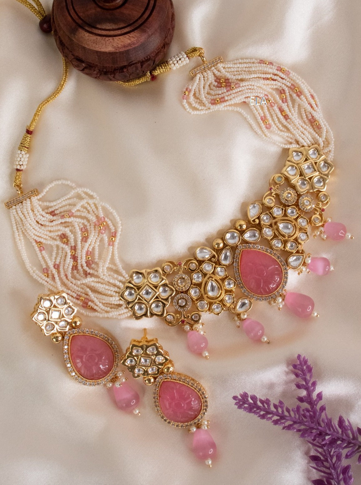 Kundan Necklace Set - Pink