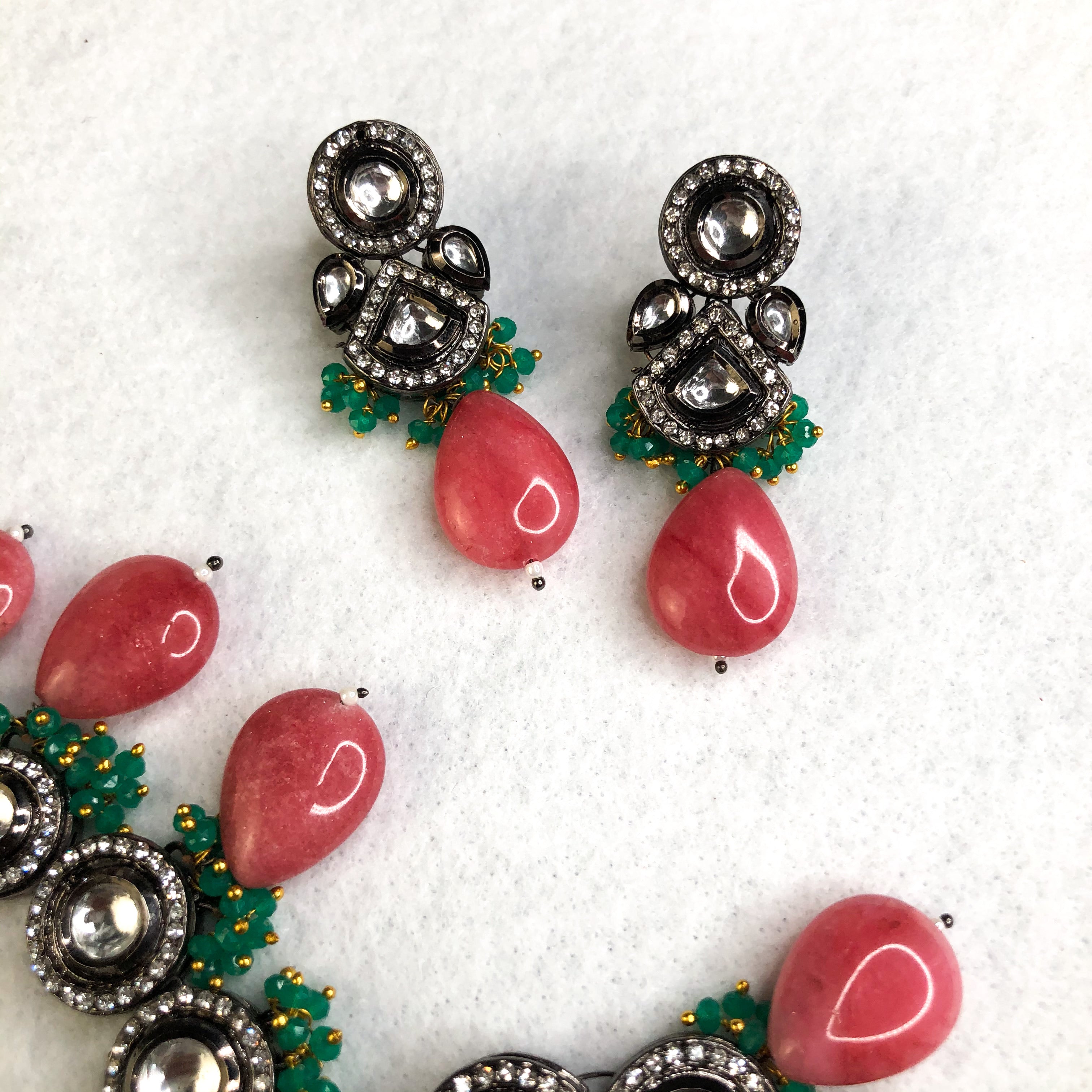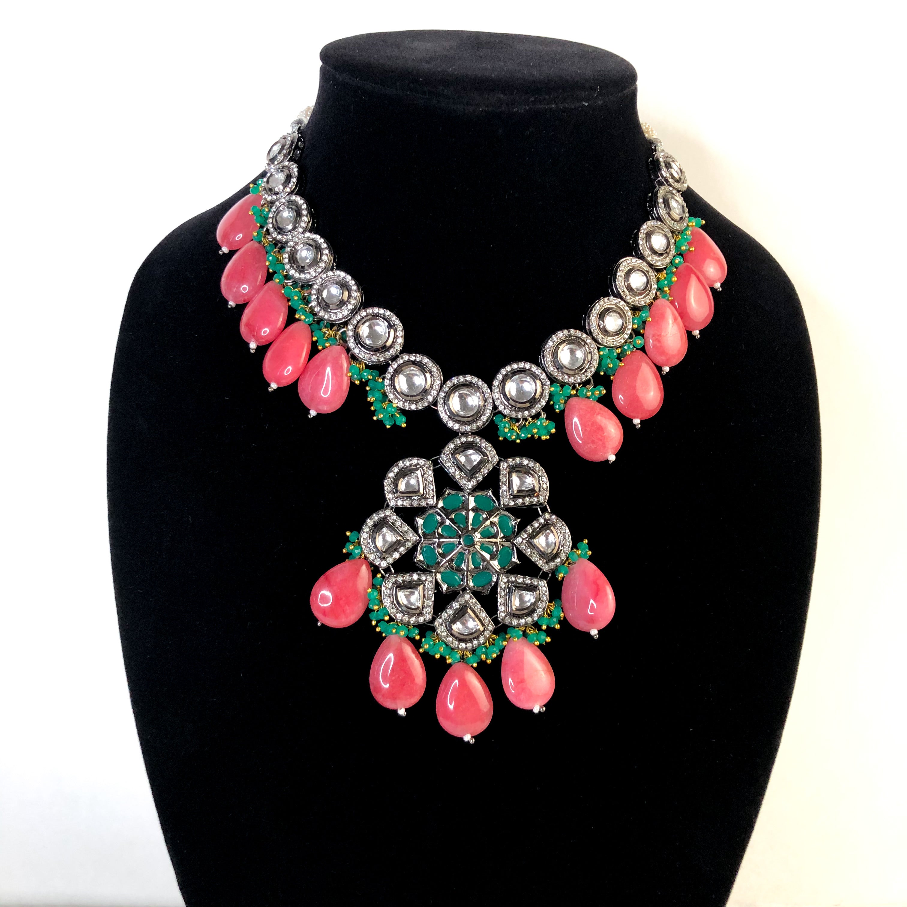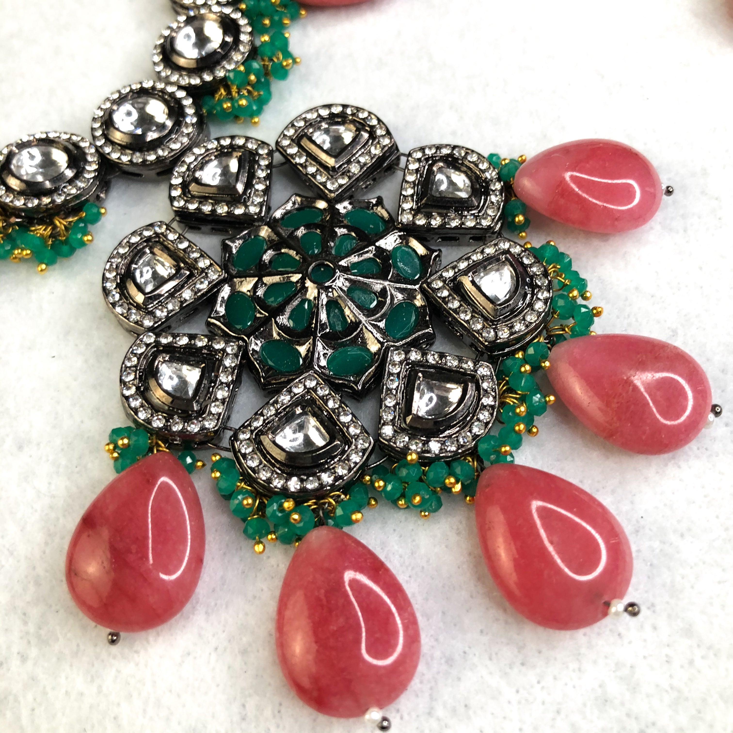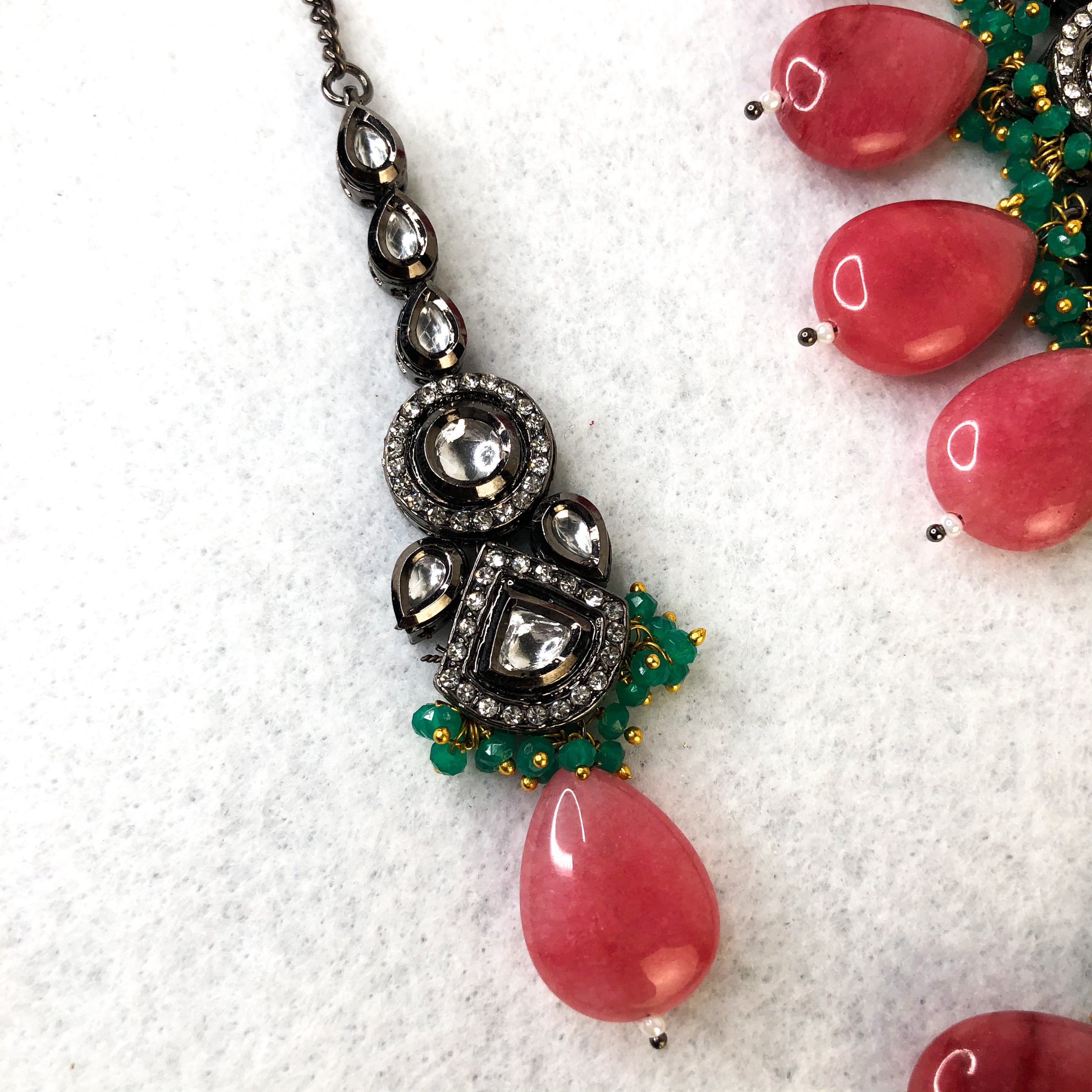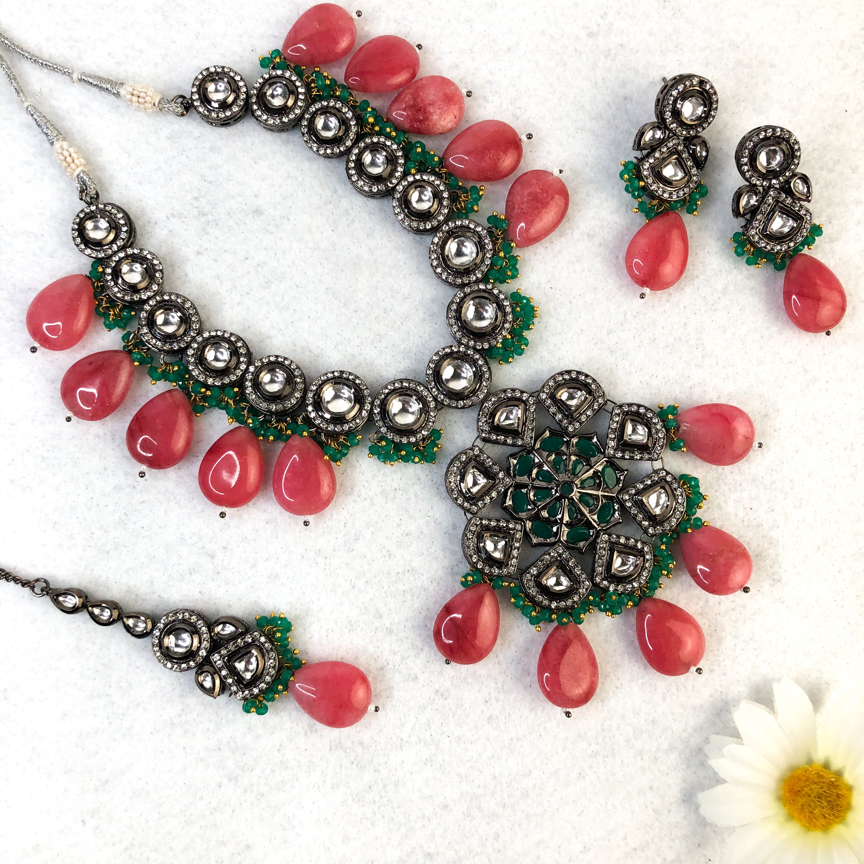 - Premium Quality Necklace with earrings, tikka and back rope.