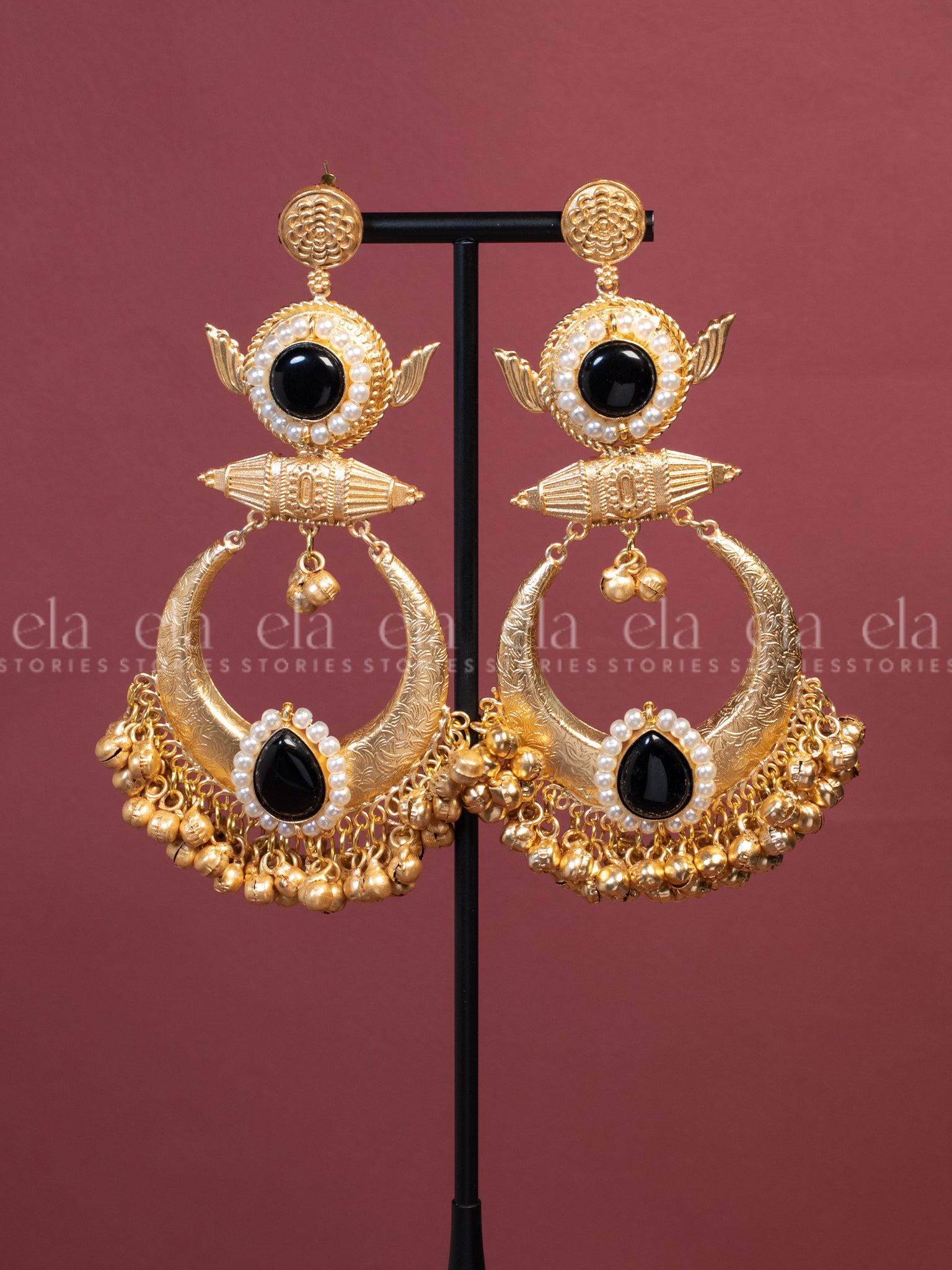 Light Weight Gold Tone Ghungroo Statement Earrings - Black