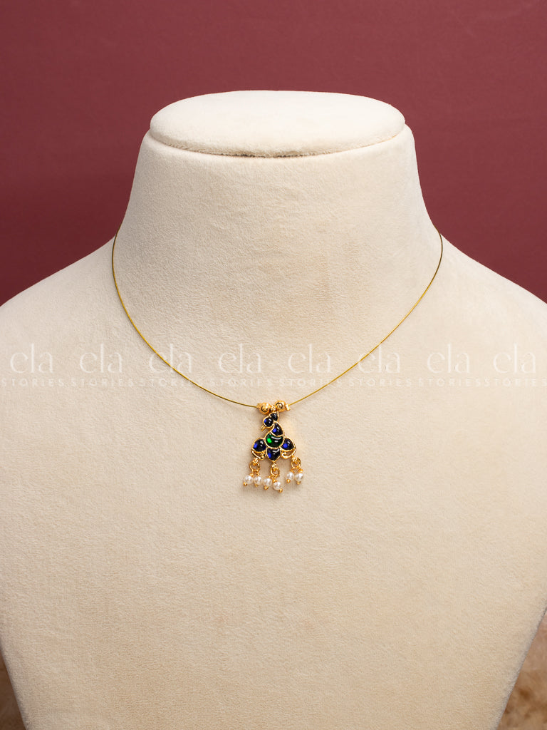 The wire used to string the motifs is strong and cannot be broken by hand, ensuring durability despite its delicate look. The motifs and figurines, like the lotus, parrot, and coin designs, are made with premium materials. While locks and tiny components may naturally tarnish due to individual body conditions, this will not affect the overall elegance, as the pendant remains the centerpiece.