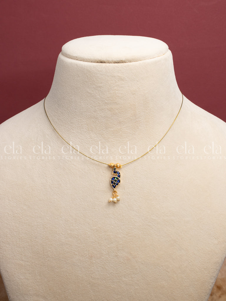 The wire used to string the motifs is strong and cannot be broken by hand, ensuring durability despite its delicate look. The motifs and figurines, like the lotus, parrot, and coin designs, are made with premium materials. While locks and tiny components may naturally tarnish due to individual body conditions, this will not affect the overall elegance, as the pendant remains the centerpiece.