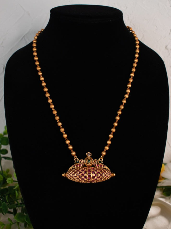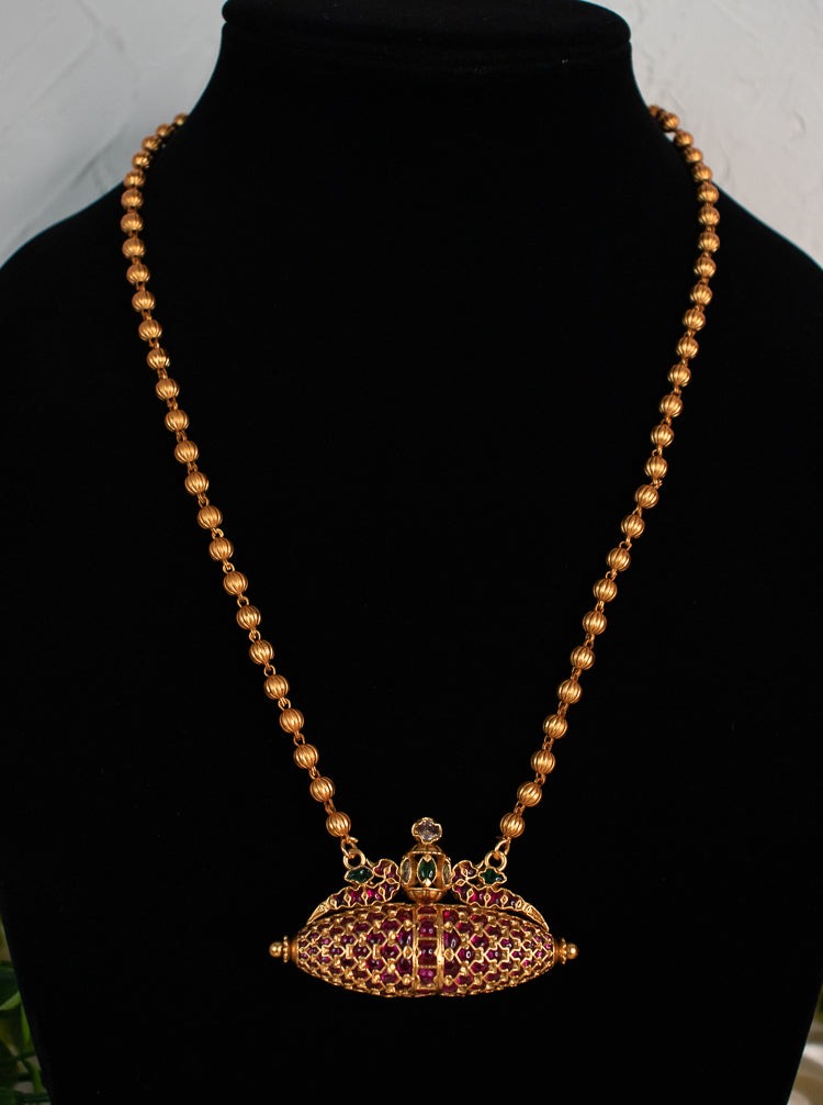 - Gold plated on a high-quality copper and brass material studded with simulated kemp stones.