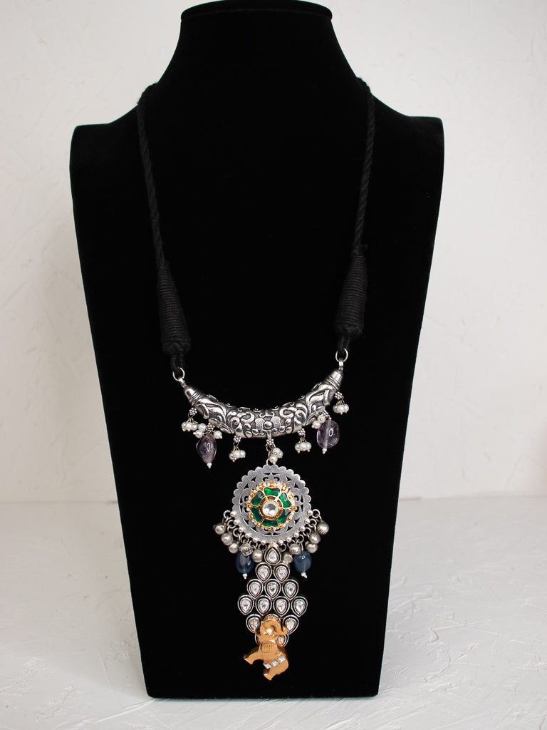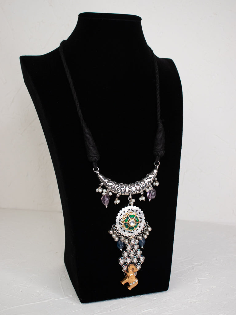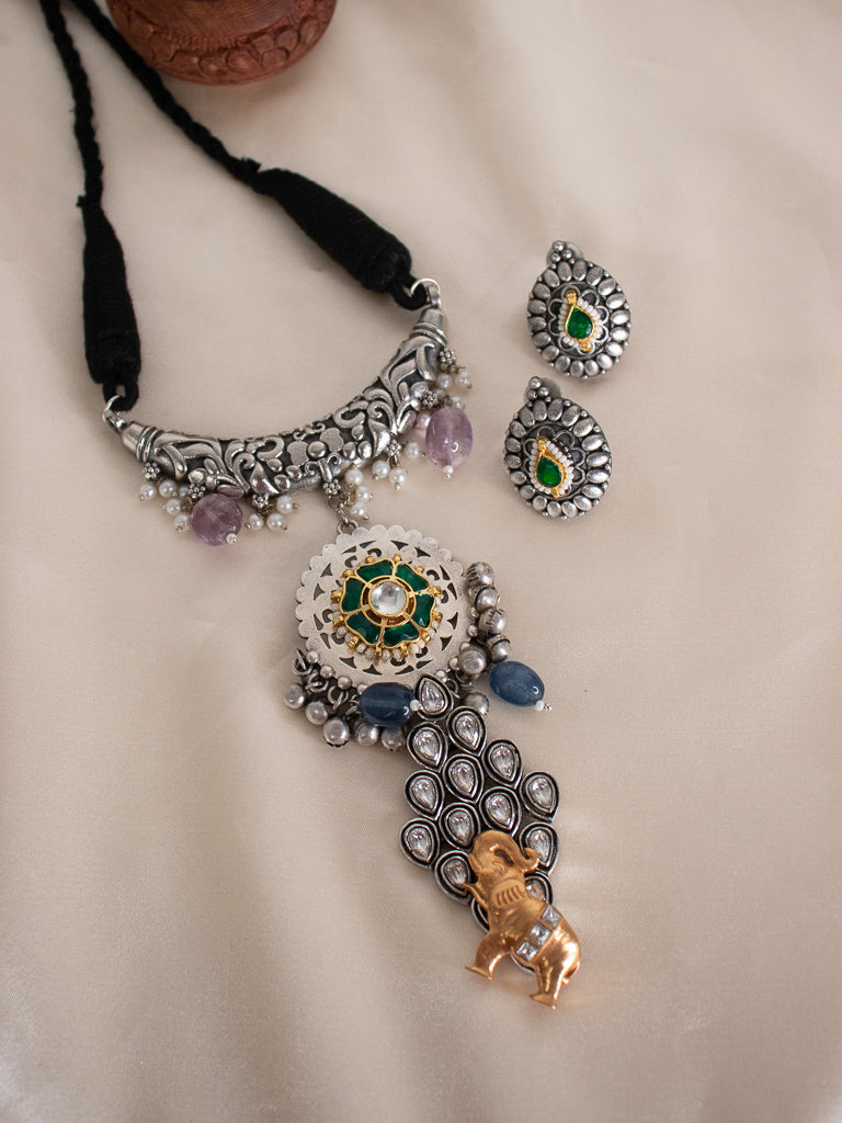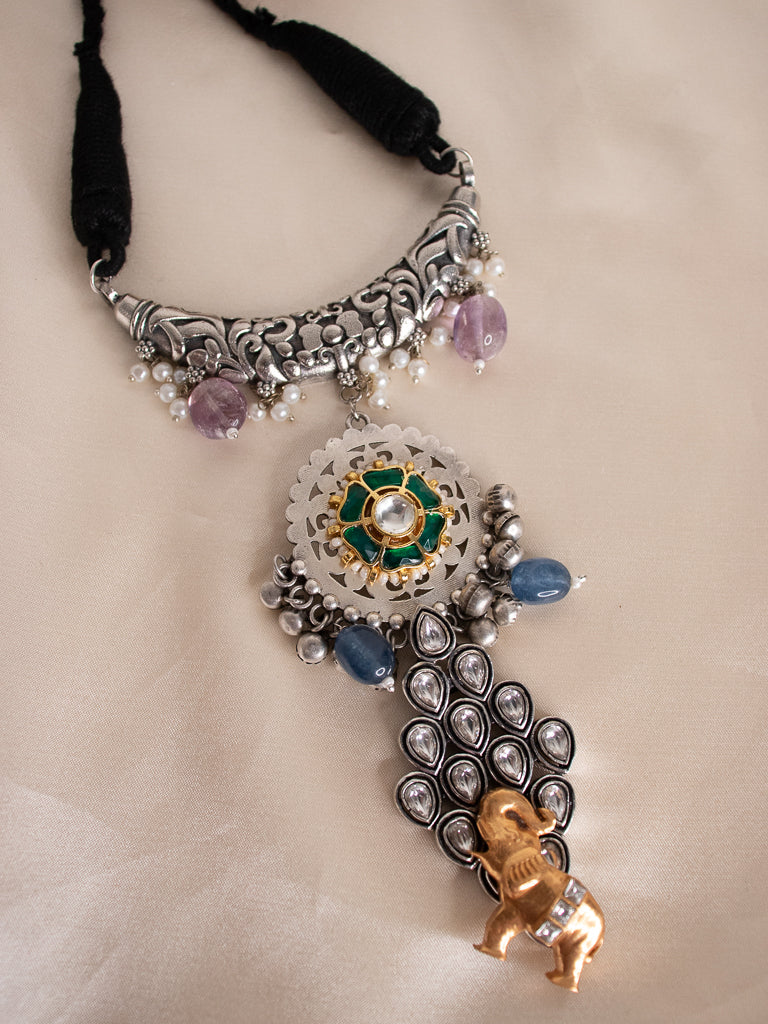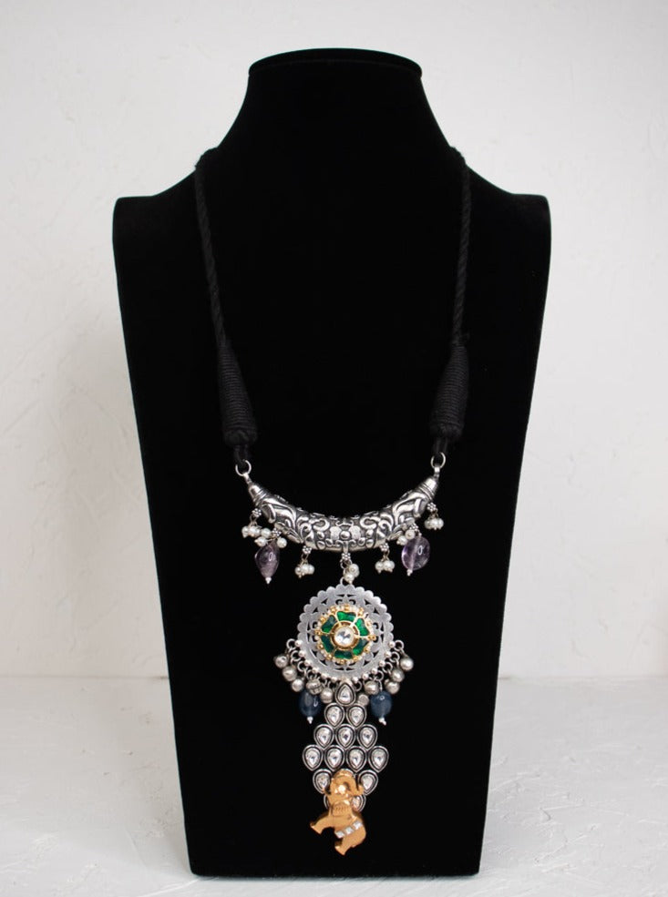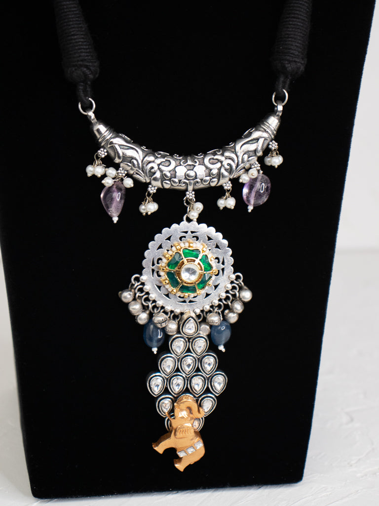 - Made with a high-quality brass base metal with german silver finish. The Motifs are pachi kundan in copper metal.