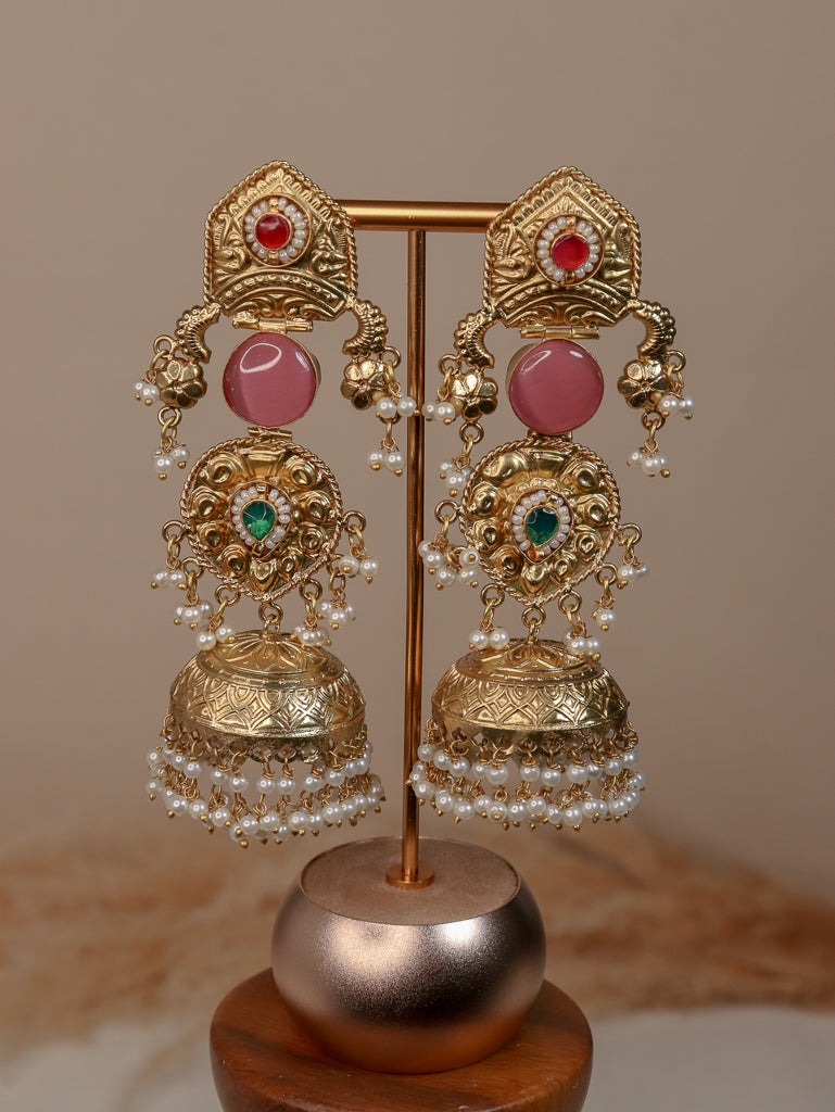 - Measuring at 4.25 inches in drop and 1.25 inches in width, these earrings are made of brass.